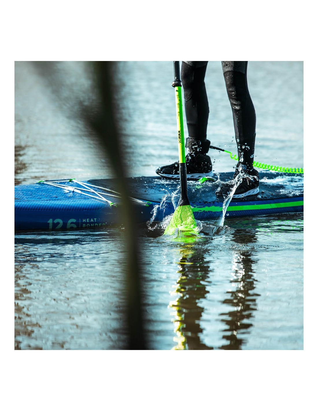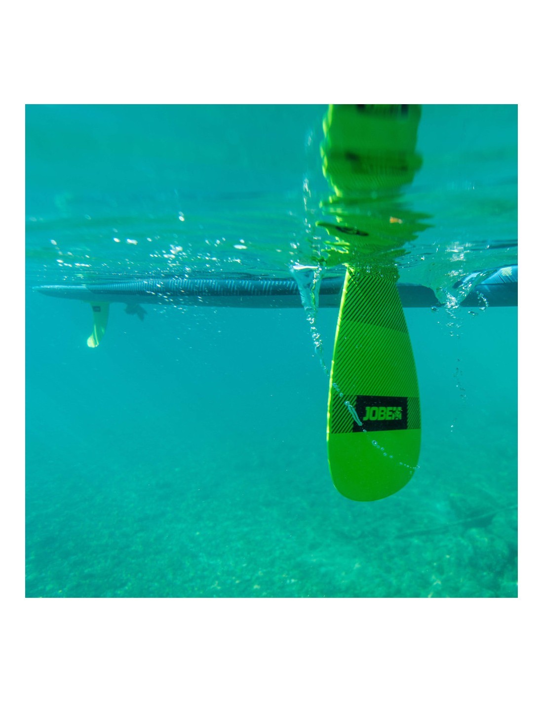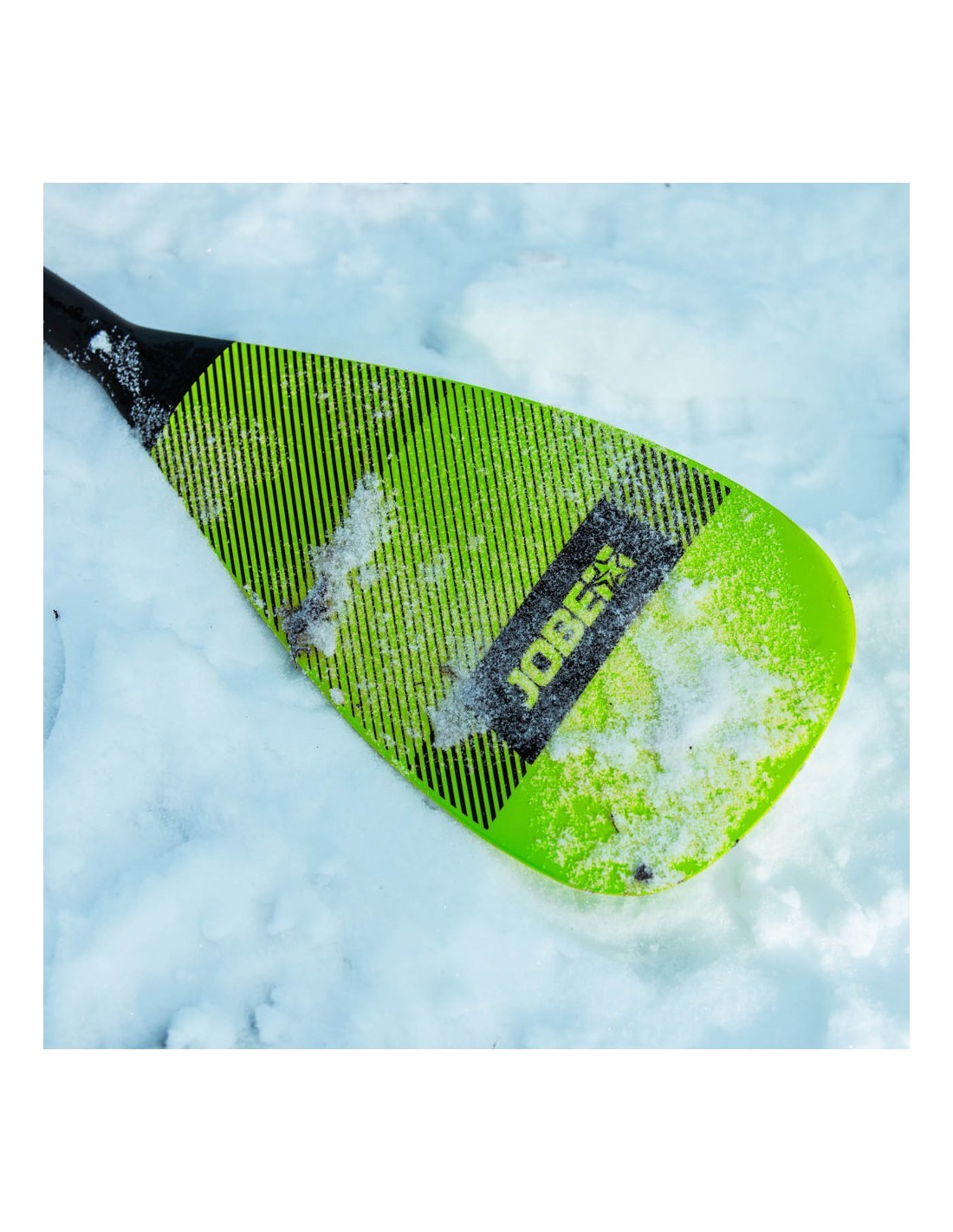 The Fiberglass Paddle Jobe is lightweight and easy to handle, making it ideal for moderately advanced paddle boarders. Its adjustable construction makes it possible to adjust the length of the paddle (180 – 220 cm) to fit the user’s needs. You can also fold the paddle up and put it in the backpack that comes with inflatable paddleboards. The paddle also features a T-bar handle for a better grip. Weighing only 780 g, this is a lighter paddle. Furthermore, its shape makes paddling very comfortable, ensuring a stable and smooth ride.