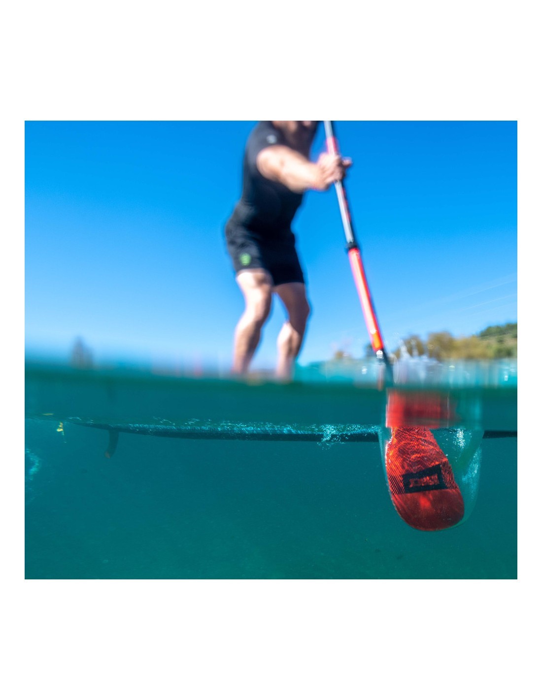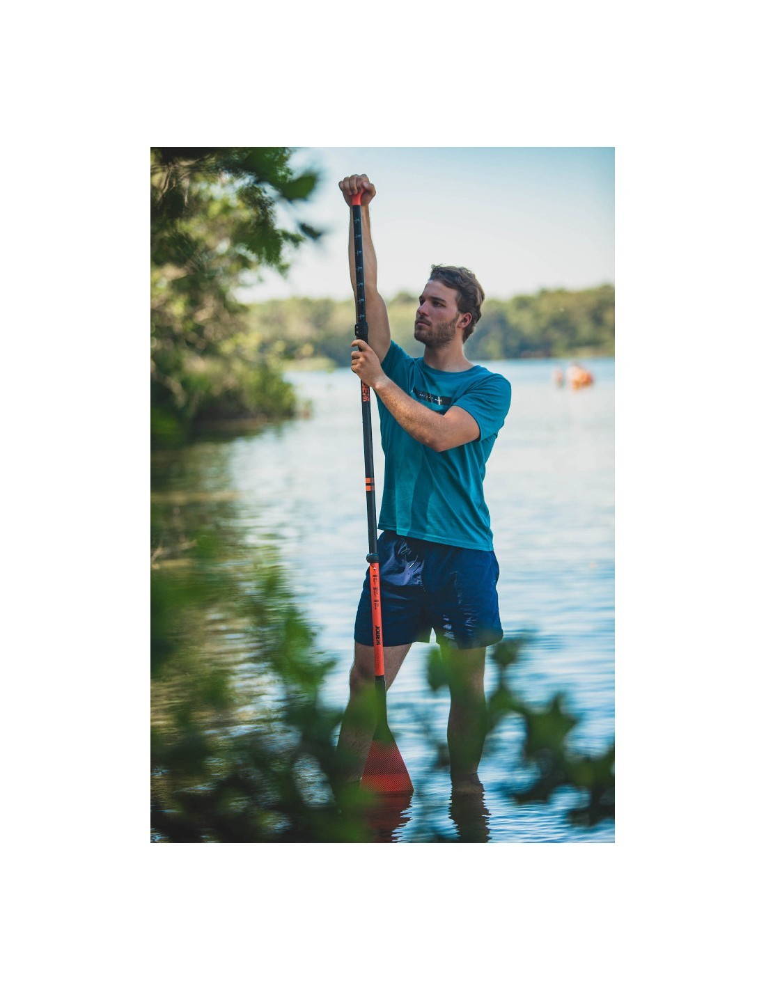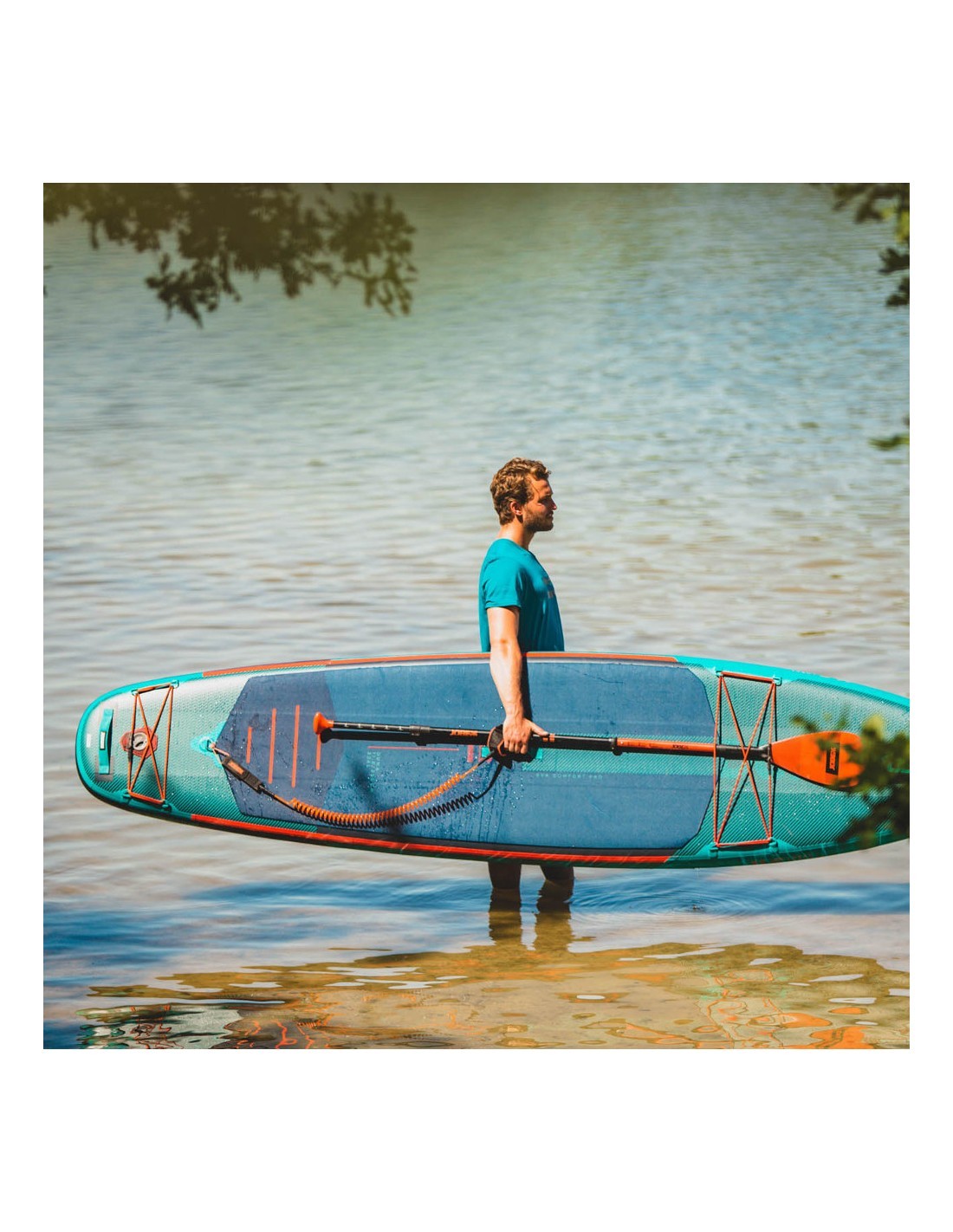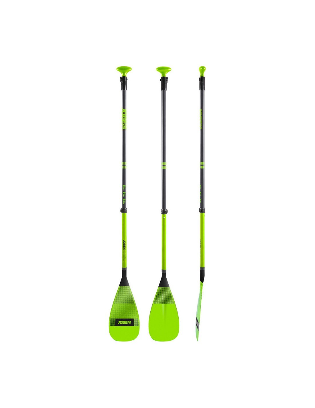 The Fiberglass Paddle Jobe is lightweight and easy to handle, making it ideal for moderately advanced paddle boarders. Its adjustable construction makes it possible to adjust the length of the paddle (180 – 220 cm) to fit the user’s needs. You can also fold the paddle up and put it in the backpack that comes with inflatable paddleboards. The paddle also features a T-bar handle for a better grip. Weighing only 780 g, this is a lighter paddle. Furthermore, its shape makes paddling very comfortable, ensuring a stable and smooth ride.