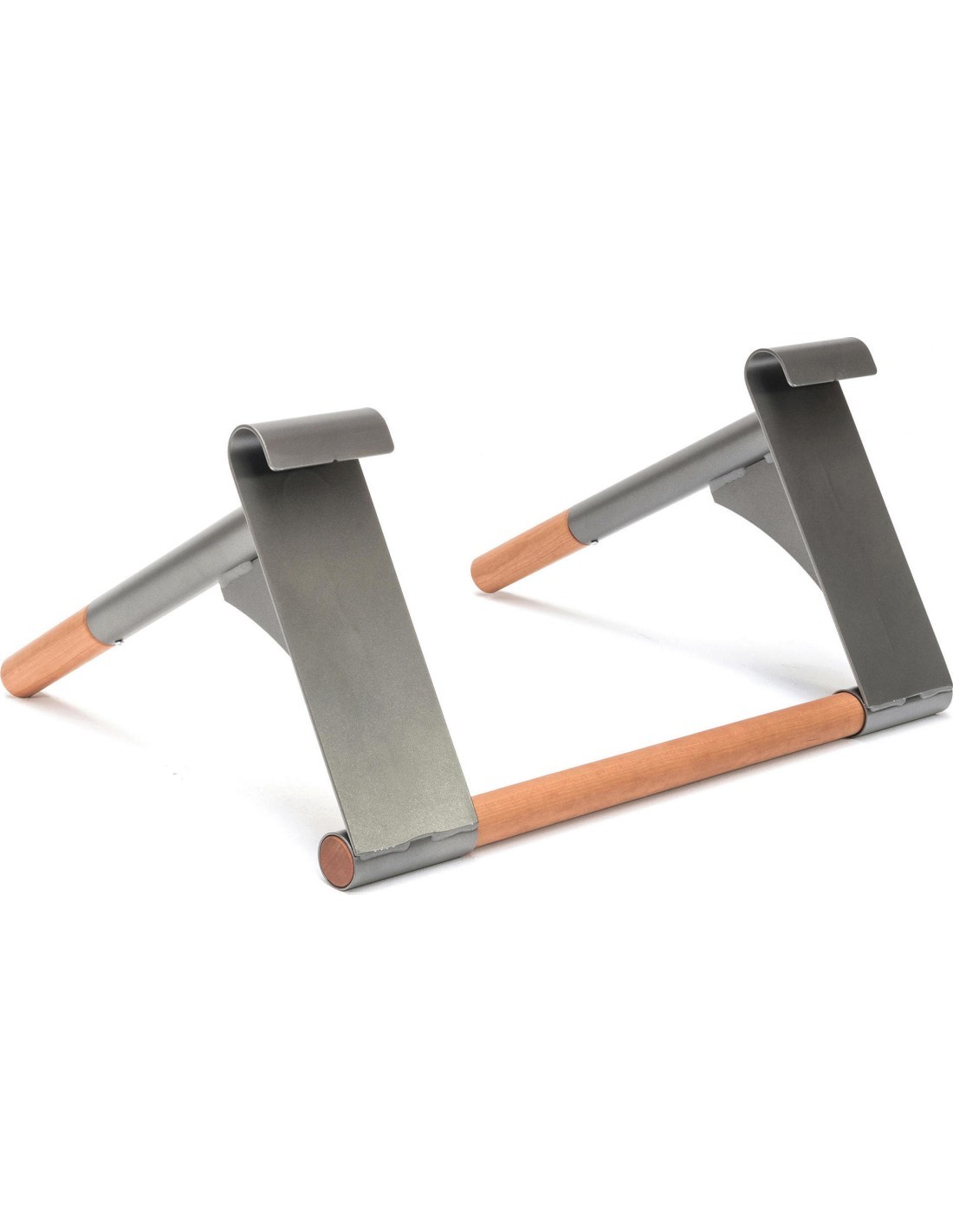 | Adapteris ir izgatavots no augstas kvalitātes koka un izturīga metāla, nodrošinot kvalitāti un precizitāti. | Garantēta stabilitāte un izturīgi satvēriena rokturi. Dabiskā koka struktūra rada ērtu un drošu satvēriena iespēju. | Izsmalcināts un skatienu piesaistošs dizains, kas radīts ar koka un metāla kombināciju, papildinās jebkuru interjeru. | Adapteris ir kas vairāk kā tikai elegants elements: tas ļauj veikt plaša spektra vingrinājumus, koncentrējoties uz dažādām muskuļu grupām. |