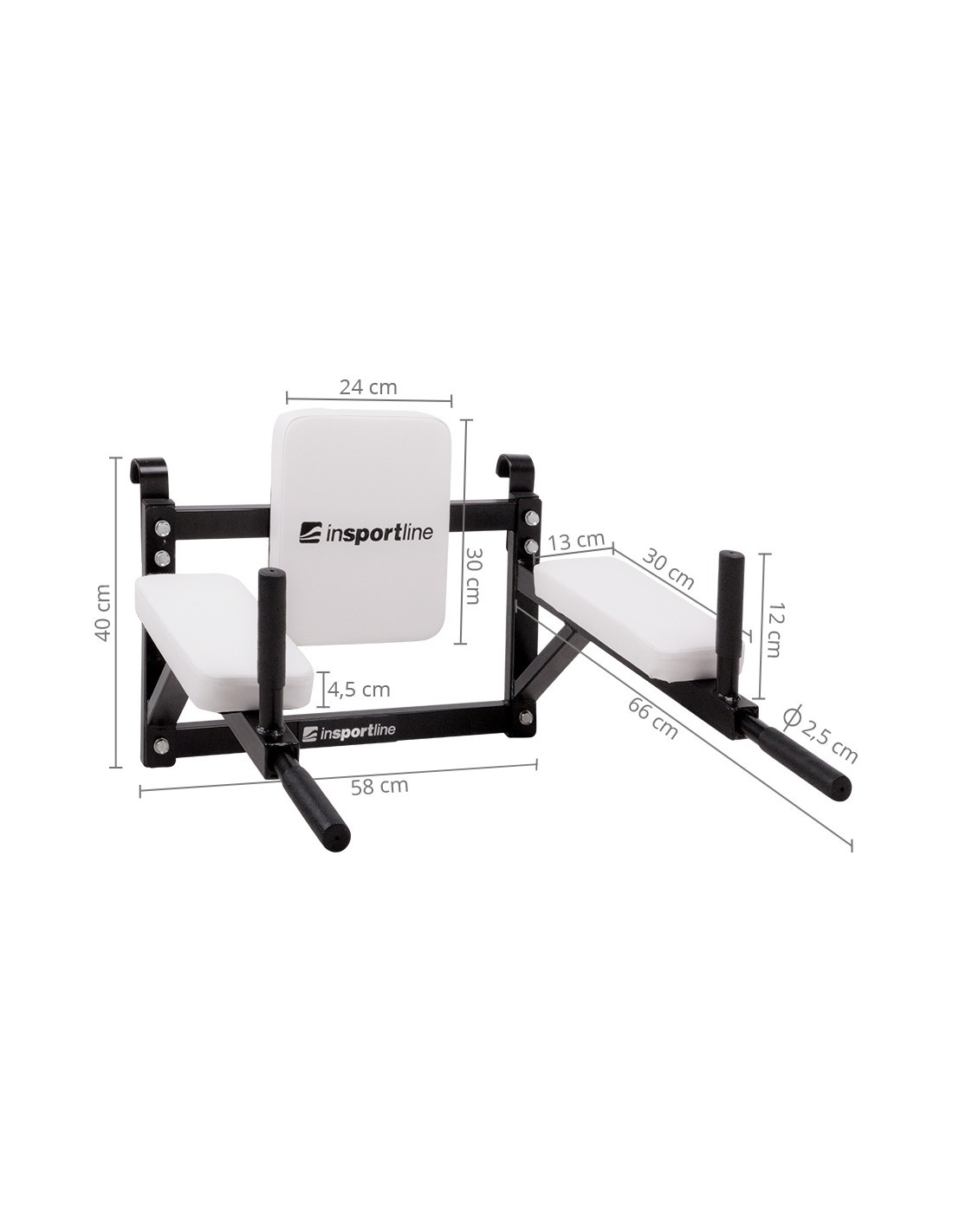 Sienas dip stacija inSPORTline LCR-11114B palīdzēs jums nostiprināt vēderpreses, roku un muguras muskuļus. Tās ir izgatavotas no skrāpējumiem izturīga materiāla, kas neizliekas no formas. Rāmis ir pastiprināts, tāpēc tas var izturēt līdz 150 kg uz sienas stieņiem un 200 kg, ja tas ir piestiprināts pie sienas. Iegremdēšanas staciju var piestiprināt pie sienas stieņiem ar diviem stipriem āķiem aizmugurē vai pie sienas ar sešām stiprām skrūvēm. Paralēlos stieņus balsta šķērssijas, kas vēl vairāk pastiprina rāmi. Ir polsterēti roku balsti un atzveltne, kas nodrošina komfortu treniņa laikā un novērš sasitumus un sasitumus. Lai padarītu treniņus vēl efektīvākus, ir 4 praktiski gumijas rokturi ar pretslīdes virsmu. Sienas dip stacija inSPORTline LCR-11114B piedāvā lielisku veidu, kā vingrot, izmantojot sava ķermeņa svaru, un nostiprināt rokas, vēderpresi un muguru. Dip stacija ir piemērota lietošanai mājās.