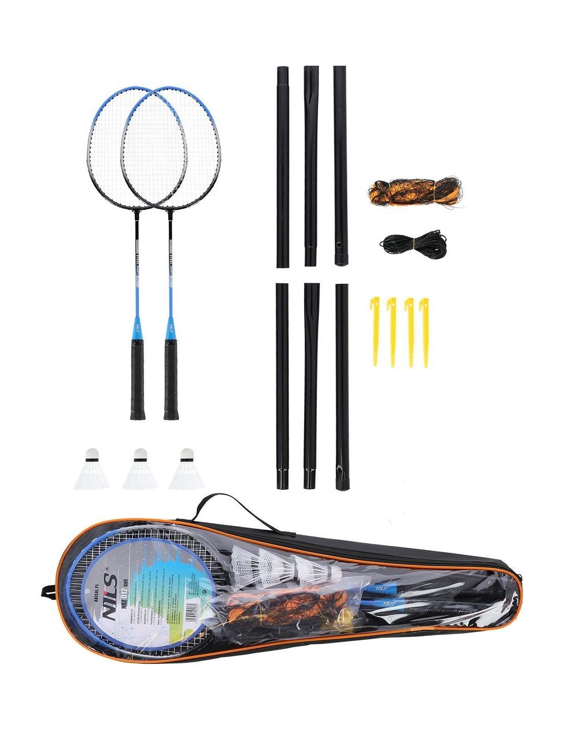 Badmintona komplekts Nils NRZ012, tērauds, 2 raketes, 3 badmintona spalvas, tīkls 195 x 22 cm, futrālis