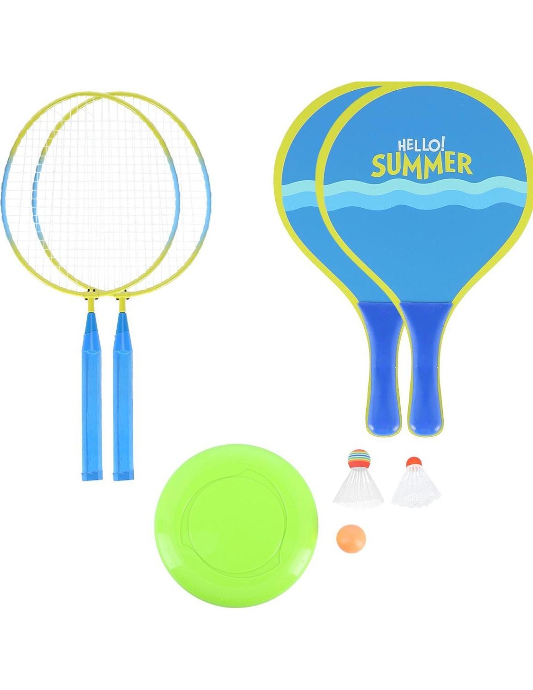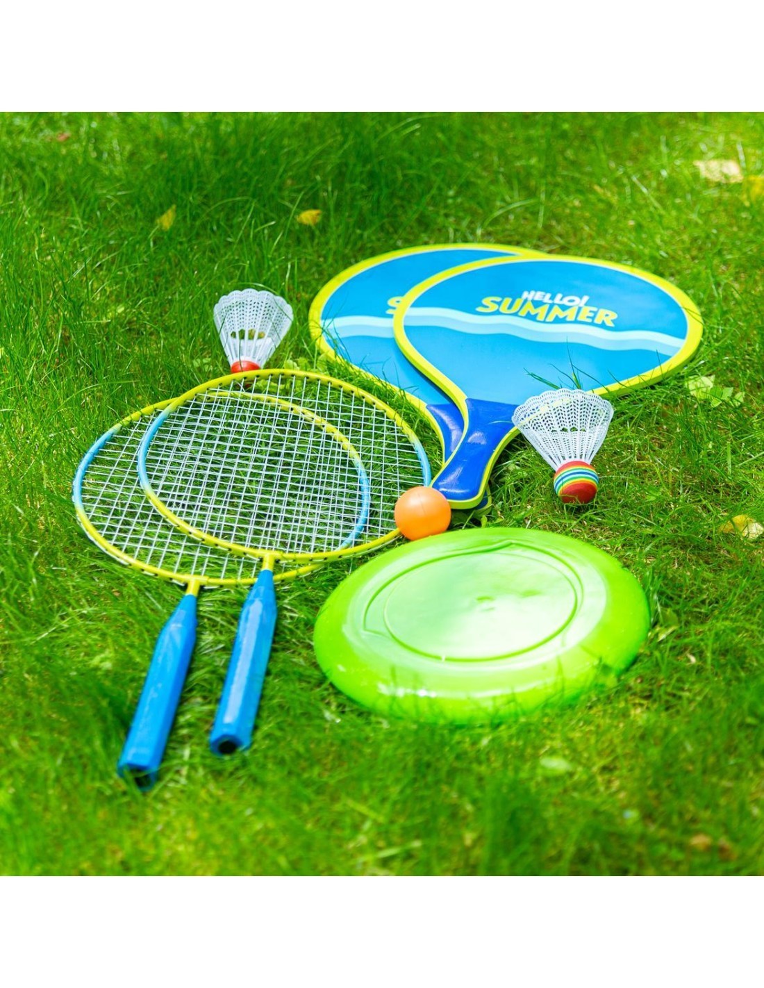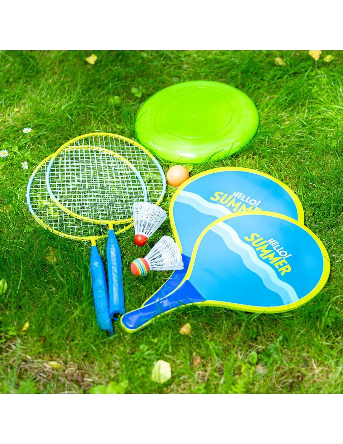 NRZ053 NILS ir rakešu komplekts, kas garantē daudz jautrības un izklaides ārpus telpām. Komplektā ir divas tērauda raketes, divas koka raketes, divas šautriņas, gumijas bumbiņa un, it kā ar to nepietiktu, plastmasas frizbi. Šis lieliskais komplekts ir ideāls piedāvājums visiem, kam patīk aktīvi pavadīt laiku brīvā dabā. Tas lieliski noderēs pludmalē, parkā vai piemājas dārzā. Gan tērauda, gan koka lāpstiņām ir daudz lielāka atlēcošā virsma nekā badmintona raketēm. Tas nodrošina vienmērīgāku un vieglāku spēlēšanu, un tādējādi ar šo izaicinājumu var tikt galā pat paši mazākie lēkšanas entuziasti. Secinājums ir viens, jautri visai ģimenei. Neaizmirsīsim, ka komplektā ietilpst arī frizbi, kas būs lieliska brīvdienu spēļu dažādība. Viss komplekts ir ievietots ērtā somā, ko var viegli pārmest pāri plecam. Spēlējot ar NRZ053 komplektu, ir ļoti jautri, ļoti viegli un garantē izklaidi stundām ilgi. Specifikācija: Materiāls: Raketes: tērauda Preču paletes: koka Frizbi: plastmasa 1 x šautriņas: EVA + neilons 1 x šautriņu dēlis: plastmasa + neilons Bumba: gumijas Izmēri: Raķete: Garums: 46 cm Atsitiena virsma: 23 x 20 cm Rokturis: 15 x 2,5 cm Roktura biezums: G1 Koka palete: Garums: 38 cm Atsitiena virsma: 23,8 x 24 cm Rokturis: 14 x 4 cm Frizbi: 23 x 2 cm Plastmasas šautriņu dēlis: 7,5 x 6,5 cm EVA šautriņu dēlis: 8,5 x 6,5 cm Bumba: 3,9 cm diametrā Svars: Tērauda raķete: 74 g Koka palete: 232 g Plastmasas šautriņu dēlis: 3 g Šautriņu dēlis no EVA materiāla: 3 g Bumba: 10 g Frizbi: 72 g Komplekta svars: 750 g Piezīmes: Nav paredzēts komerciālai lietošanai Garantija 24 mēneši - garantija neietver spriegojumu