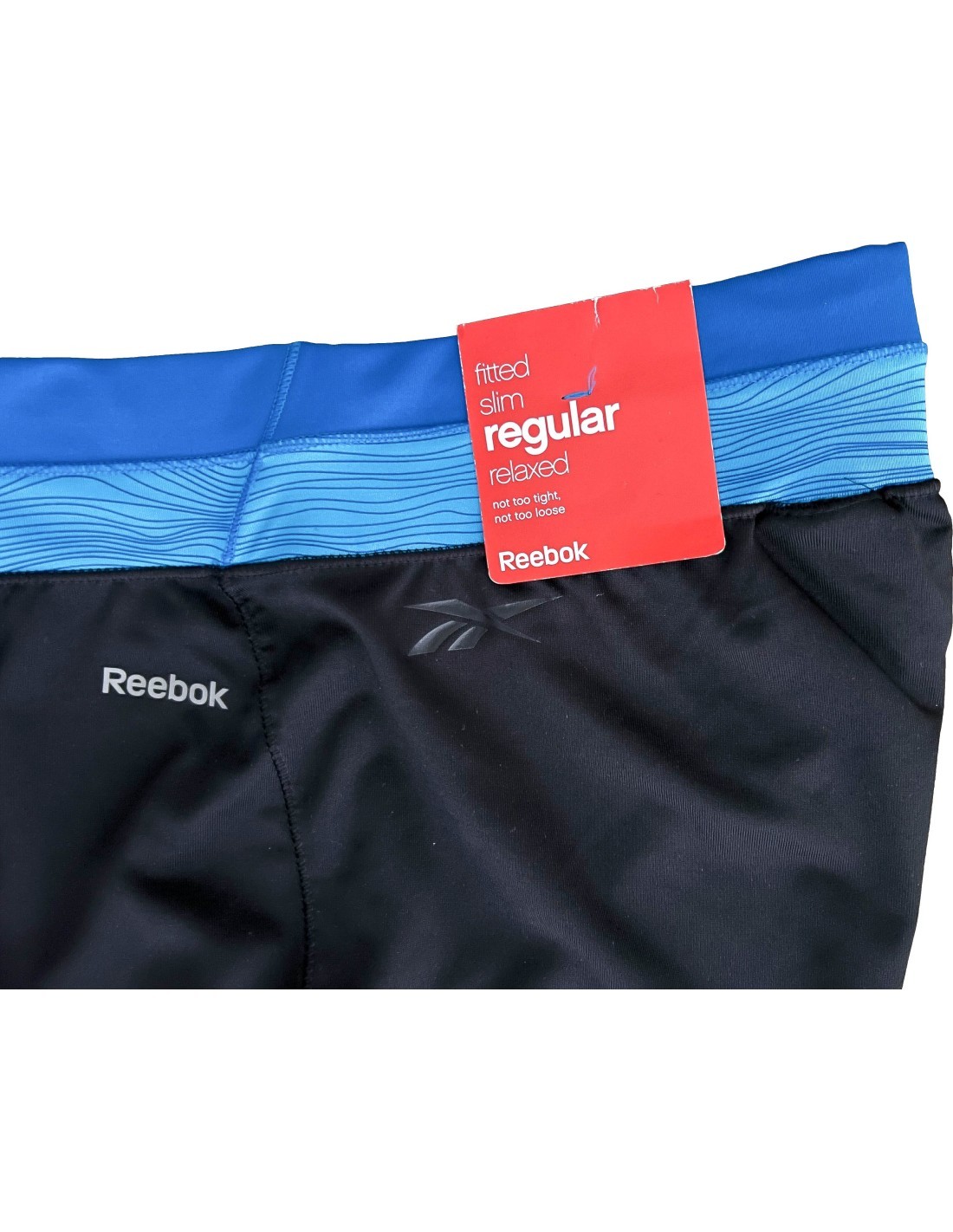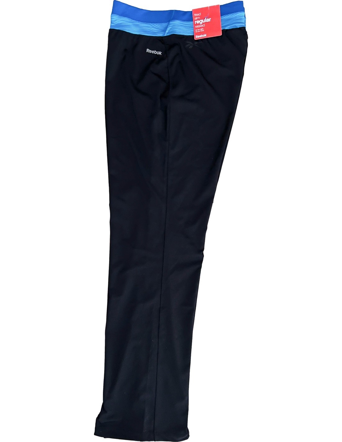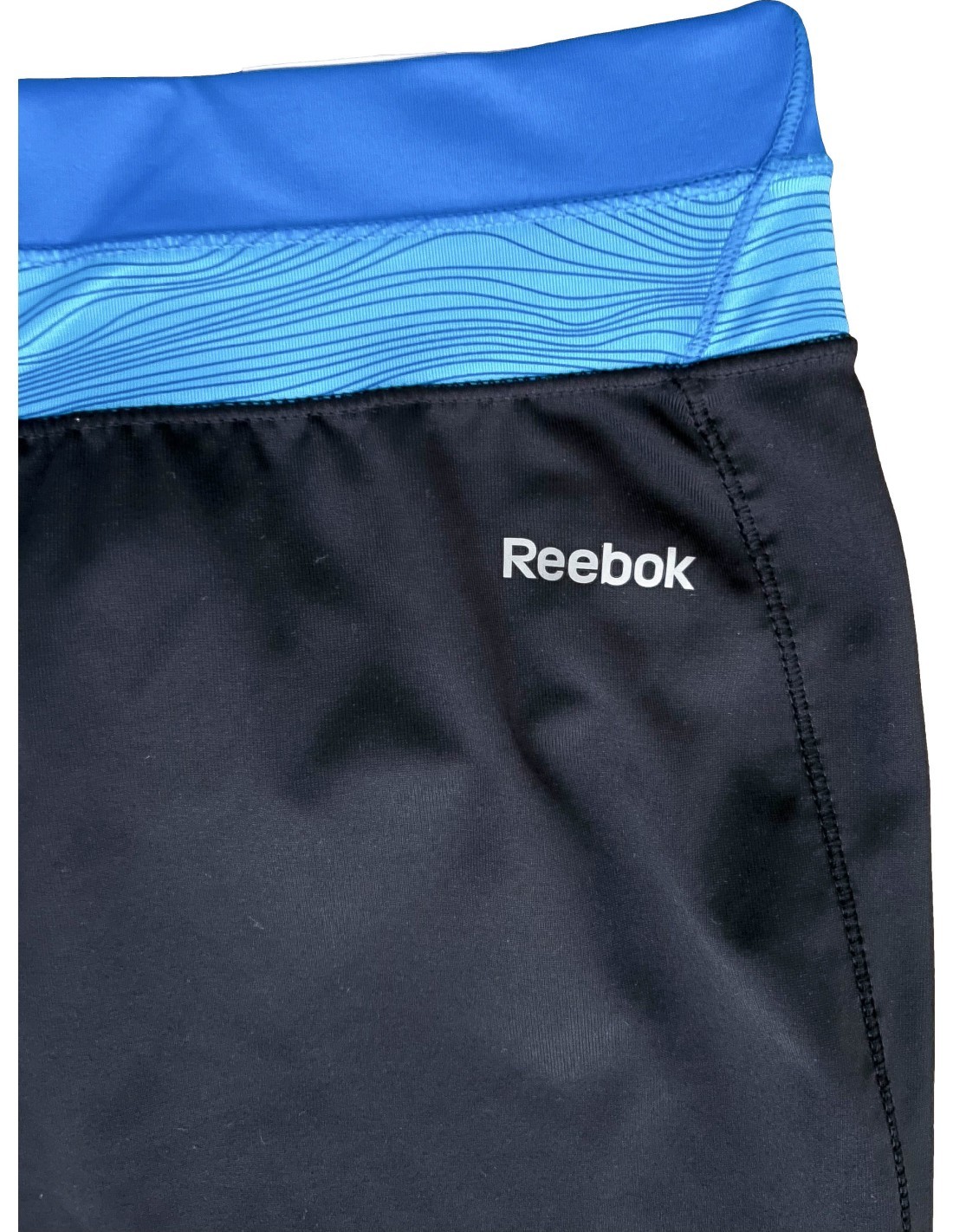 Reebok prekės ženklo moteriškos sportinės kelnės. Puikiai tinka treniruotėms ir aktyviam laisvalaikiui. Platus patogus juosmuo, glaudžiai aptempti klubai ir šlaunys. Pagamintos iš kokybiškų, orui pralaidžių medžiagų. Išlaiko šilumą, nevaržo judesių. Kelnės tiesaus modelio.