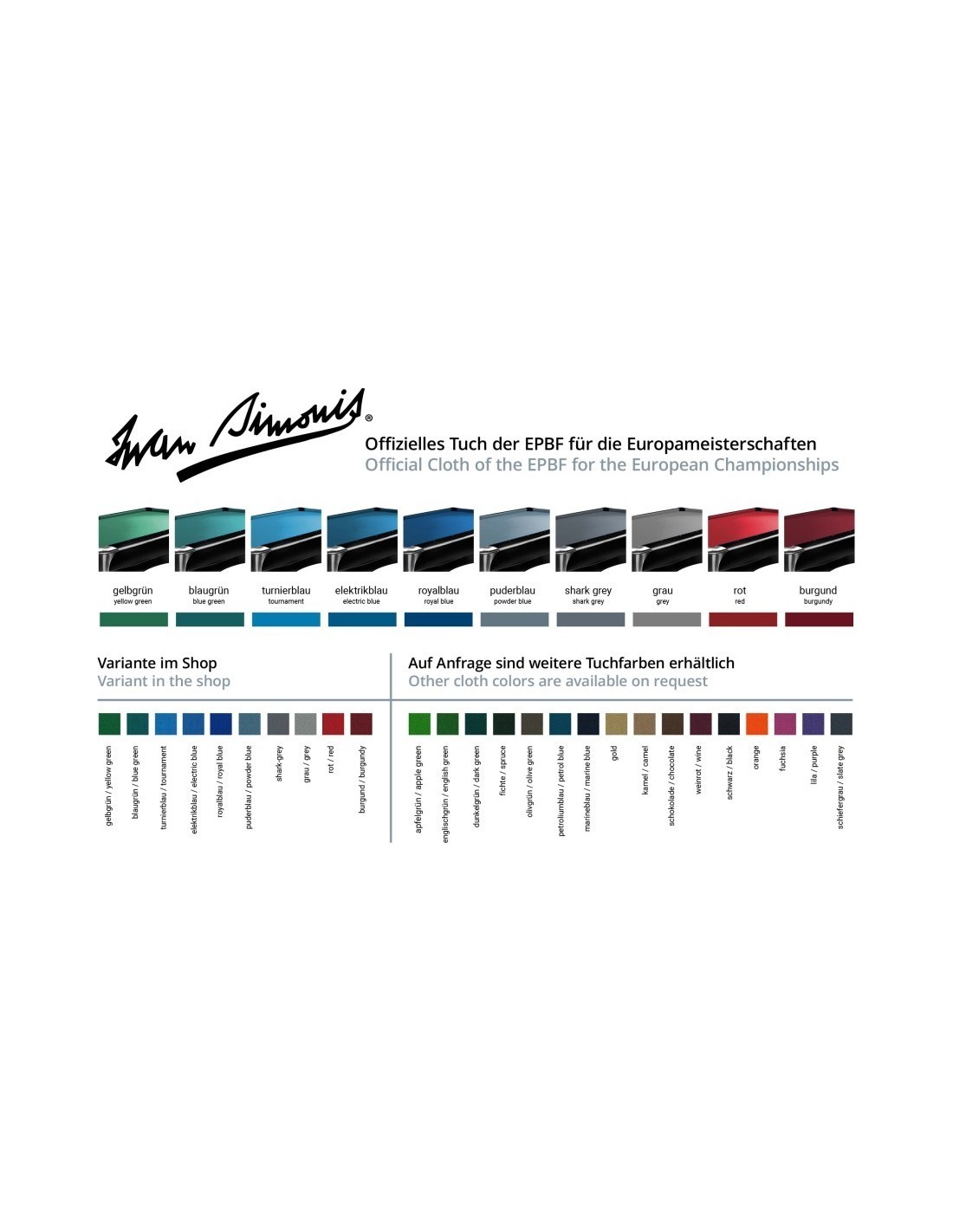 Pārdots visā pasaulē, Simonis audums ir patiesi universāla izvēle kiju sportā. Ieguvis savu reputāciju gan profesionālu spēlētāju, gan amatieru vidū, Simonis joprojām ir vairāk turnīru izvēle visā pasaulē nekā jebkurš cits audums.