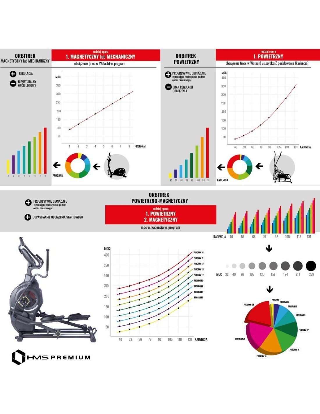 HMS PREMIUM H5815 Orbitrek HMS ir SEMI KOMERCIĀLAIS aprīkojums, kas piemērots treniņiem mājās un nelielos fitnesa klubos. Tās lielākā priekšrocība ir pretestības sistēma, kas šajā gadījumā ir magnētiskā gaisa sistēma. Šis risinājums nodrošina vienmērīgu kustību, kas nav iespējams ar parastajiem orbiteriem. Turklāt, pateicoties gaisa pretestības kombinācijai, kurā, jo ātrākas kustības, jo lielāka pretestība, ar klasisko magnētisko pretestību, mēs iegūstam neierobežotas iespējas pielāgot aprīkojumu savam fiziskās sagatavotības līmenim. Orbitrek ir moderns dators ar LCD displeju. Vadība ir ļoti intuitīva un vienkārša. H5815 ir iebūvētas 22 programmas. Katrs lietotājs neatkarīgi no apmācības līmeņa atradīs sev piemērotu programmu. Turklāt dators saskaita un parāda visus parametrus, kas nepieciešami apmācības laikā. Turklāt šis modelis ir aprīkots ar mobilo ierīču turētāju, lai treniņa laikā varētu ērti izmantot planšetdatoru. H5815 modelis ir izturīgs, un, neraugoties uz tā ievērojamo svaru, to ir ļoti viegli pārvietot, pateicoties transportēšanas riteņiem. Augstākās kvalitātes materiāli garantē drošību un ļauj sasniegt kravnesību līdz 150 kg. Treniņi uz orbitreka ļauj sadedzināt liekos ķermeņa taukus un uzlabot kardiorespiratorās funkcijas. Turklāt, vingrojot mēs samazinām kortizola līmeni asinīs, kas ir stresa hormons, un saražojam lielu devu serotonīna, kas ir laimes hormons. Vienkāršāk sakot, pateicoties regulāriem vingrinājumiem, mūsu garastāvoklis ievērojami uzlabosies. Specifikācija: Lietošanas klase: DAĻĒJI KOMERCIĀLA Izturības veids: magnētiskā gaisa Pretestības regulēšanas veids: automātisks Izturības regulēšanas līmeņu skaits: 1-24 Sparararata svars (kg): 8 Dators (mērījumi): laiks: jā attālums: jā ātrums: jā pulss: jā RPM: jā ķermeņa tauku: jā kalorijas: jā Papildu aprīkojums: impulsu mērīšanas sensori: jā vieta mobilajai ierīcei: jā transportēšanas riteņi vai riteņi: jā Orbitrek izmēri (nesalocītā veidā): garums (mm): 1620 platums (mm): 710 augstums (mm): 1840 Solīšu garums (mm): 500 Dators (funkcijas): HRC: jā WATT: jā kopējais programmu skaits: 22 Atgūšana: jā iebūvētas treniņu programmas: jā vairākas iebūvētas treniņu programmas: 12 individuālās treniņu programmas: jā vairākas individuālas mācību programmas: 4 Barošanas avots: 240 V Izstrādājuma svars (kg): 101,8 Maksimālais lietotāja svars: 150 kg Piezīmes: 24 mēnešu garantija lietošanai mājās Garantija 12 mēneši komerciālai lietošanai