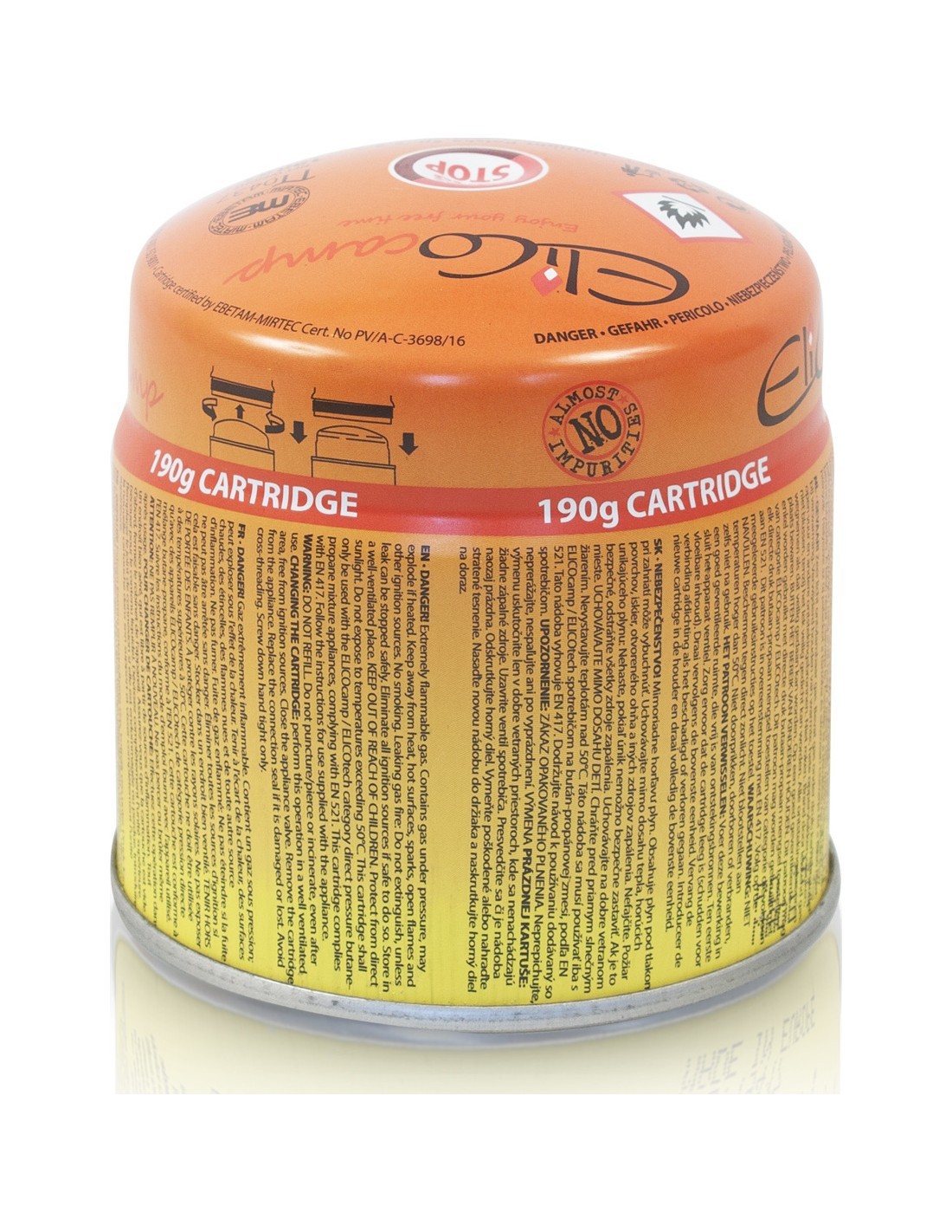 Vienreizlietojama propāna/Butāna kasetne, saderīga ar EKONOMIK K-190 kempinga gāzes plītiņu.