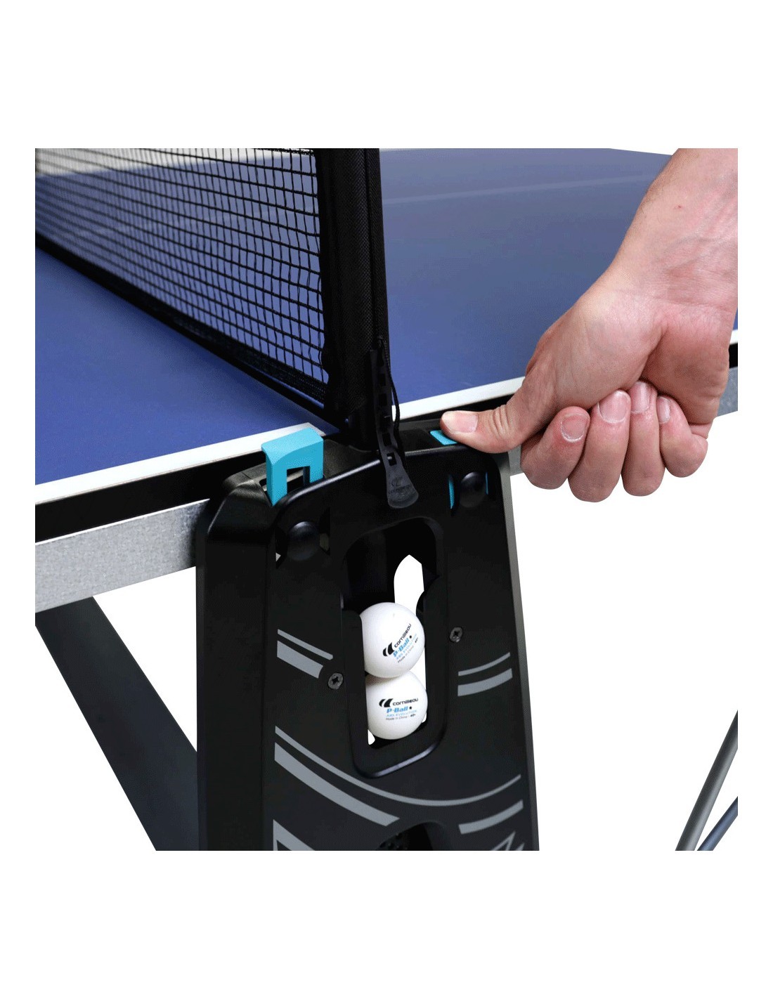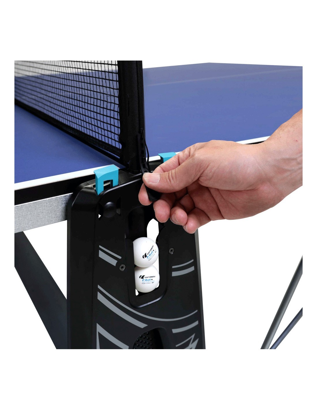 - The 100 Indoor table has built-in ball storage enabling you to store 4 balls. Located on each side of the table, this storage allows you to always have balls on hand and to start a game whenever you want.