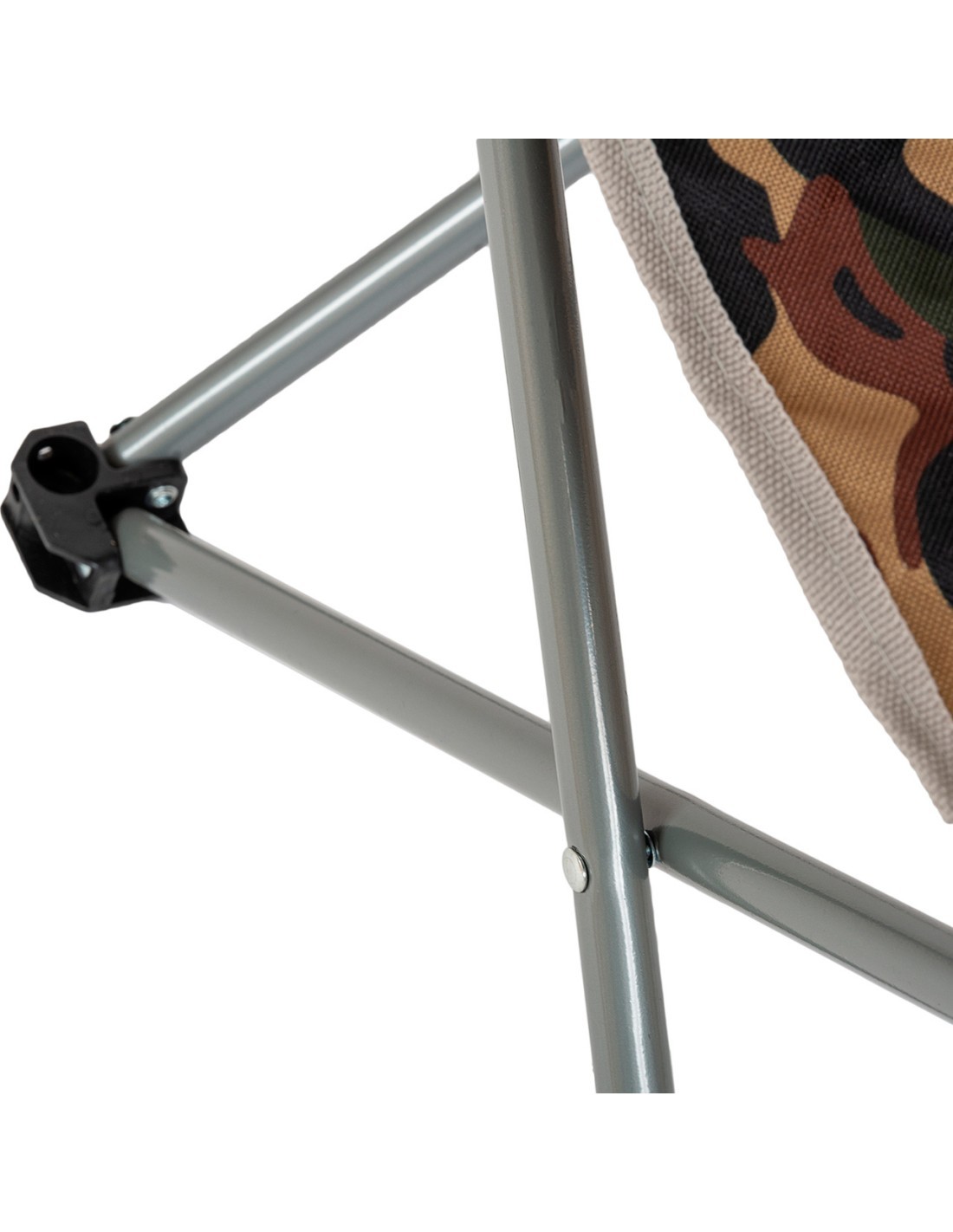 Lokāms nometnes krēsls ar roku balstiem ir ideāli piemērots ērtai sēdēšanai jebkurā vietā ārpus telpām. Stīvs rāmis.