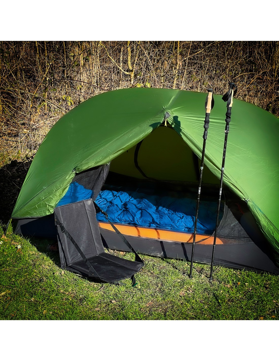 Ideāls sēdeklis sniegā, kempingā, brīvdabas koncertos vai citās āra aktivitātēs, kur zeme ne vienmēr ir sausa. Putu slānis atzveltnes un sēdekļa zonā gan polsterē, gan labi izolē krēslu. Stabilitāti nodrošina iebūvētie stikla šķiedras stieņi un regulējamās sānu siksnas. Pilnībā atverot siksnas, sēdekli var izmantot arī kā ļoti īsu avārijas paklājiņu. Atzveltnes atzveltnes aizmugurē ir tīklveida kabata piederumiem.