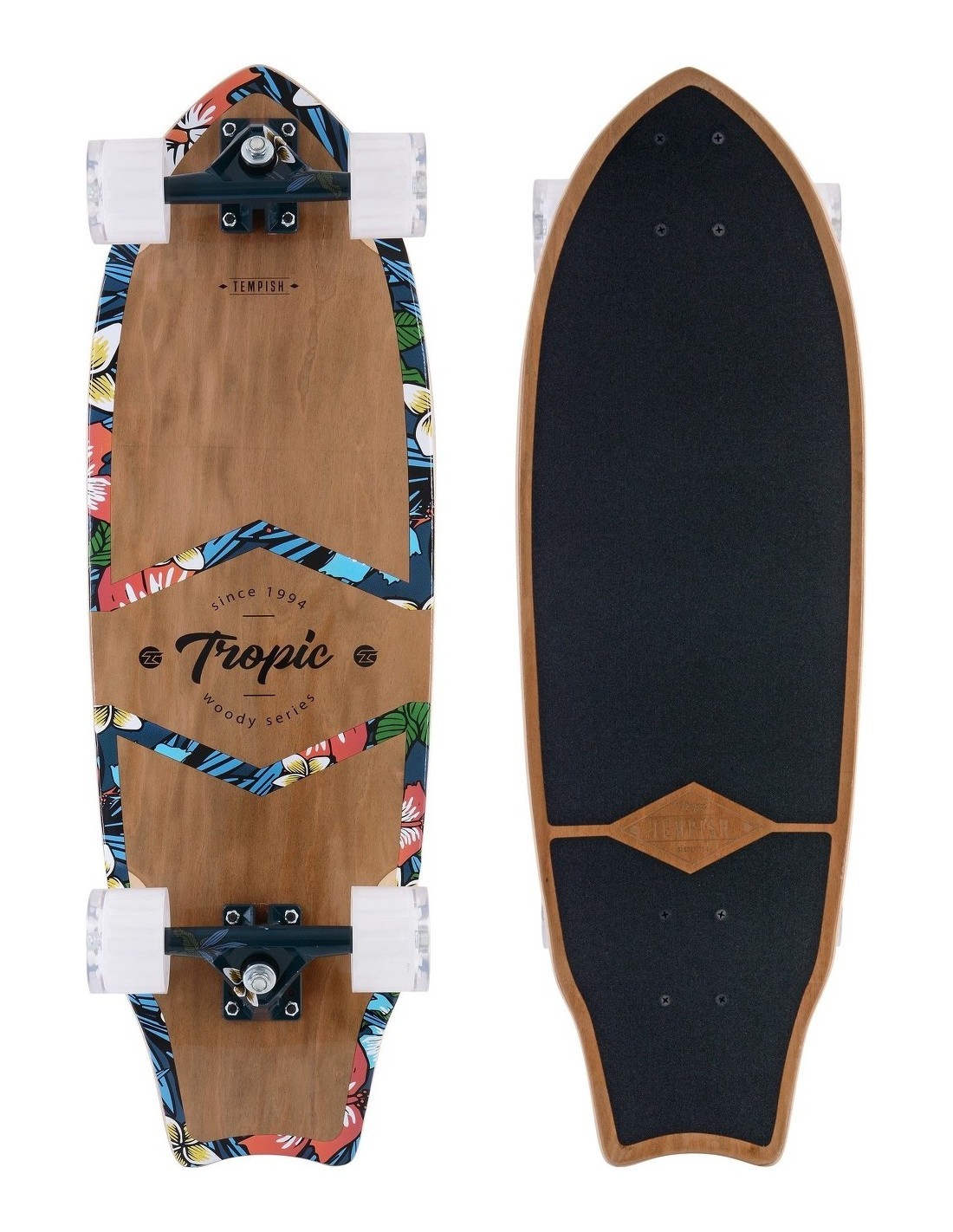Longboardas Tempish Tropic T. Didesnė ir platesnė nei standartinė riedlentė suteikia papildomo stabilumo ir komforto, todėl ja lengviau išmoks važiuoti net ir pradedantysis. Šis modelis skirtas mėgstantiens "surf" stilių dėl savo manevringumo, taip pat puikiai tiks įprastniam važinėjimui ir netgi skate parkui.