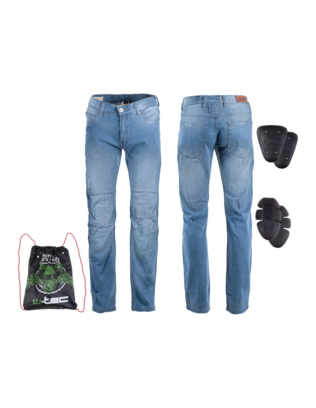 Vīriešu moto džinsi W-TEC Shiquet ir ērtas un ērtas džinsa moto bikses. Pateicoties anatomiskajam piegriezumam un elastīgajai likras šķiedrai, bikses lieliski pieguļ. Biksēm ir noņemami gurnu aizsargi (un kabatas ceļgalu aizsargiem, kas ievietojami no ārpuses), nodrošinot augstu drošības līmeni. Bez aizsargiem šīs bikses var izmantot kā parastas džinsu bikses. Turklāt biksēm ir arī atstarojošas svītras, kas atrodas apakšējā pusē. Viss, kas jums jādara, lai kļūtu labāk redzams vājā apgaismojumā, ir jāaizsien kājas.
