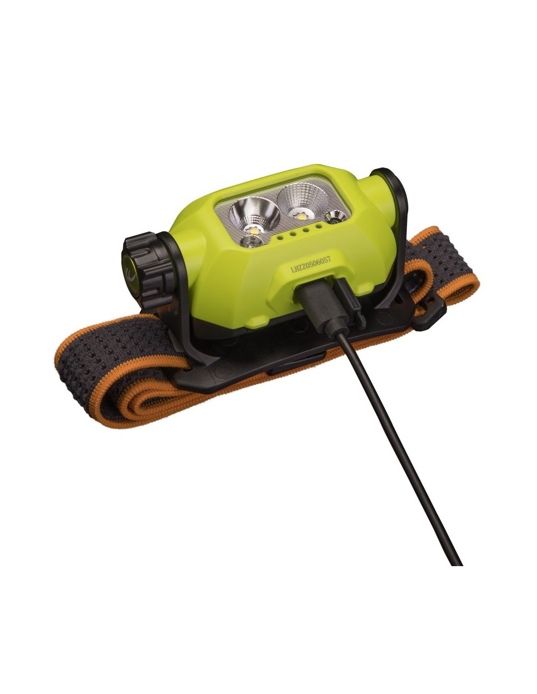 The flashlight's head is equipped with a 60-degree adjustable angle. This, combined with an exceptionally wide angle of illumination, will allow us to work comfortably regardless of the position we are in. The design of the flashlight's body is based on extremely durable, yet very lightweight polycarbonate. This guarantees us high resistance to falls and impacts, as well as a comfortably low weight allowing us to use the flashlight comfortably for many hours. This is also helped by a modern, ventilated headband, which guarantees effective wicking of moisture during warmer days.
