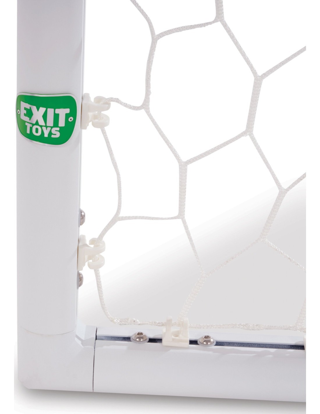 The EXIT Scala aluminium football goal in the colour white is an ultra strong and lightweight premium football goal to use in the garden. This football goal with aluminium frame has been high-quality finished and has a sportive and professional look. Its rustproof frame has a long lifespan. The EXIT Scala football goal of 300 x 200 cm has a great size for in the garden. The goal can be set up in the blink of an eye. The sturdy net of the EXIT Scala is white and easy to assemble with plastic hooks that are mounted in the profile. The Scala aluminium football goals have been developed in accordance with our EXIT sustainable philosophy. These football goals for example are 100% repairable. This means that every part of this goal can be replaced.
