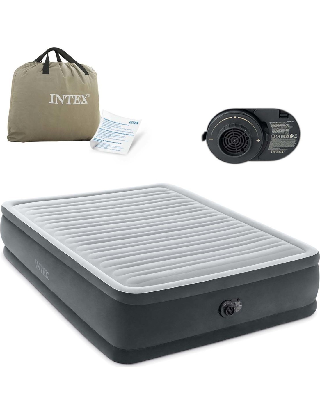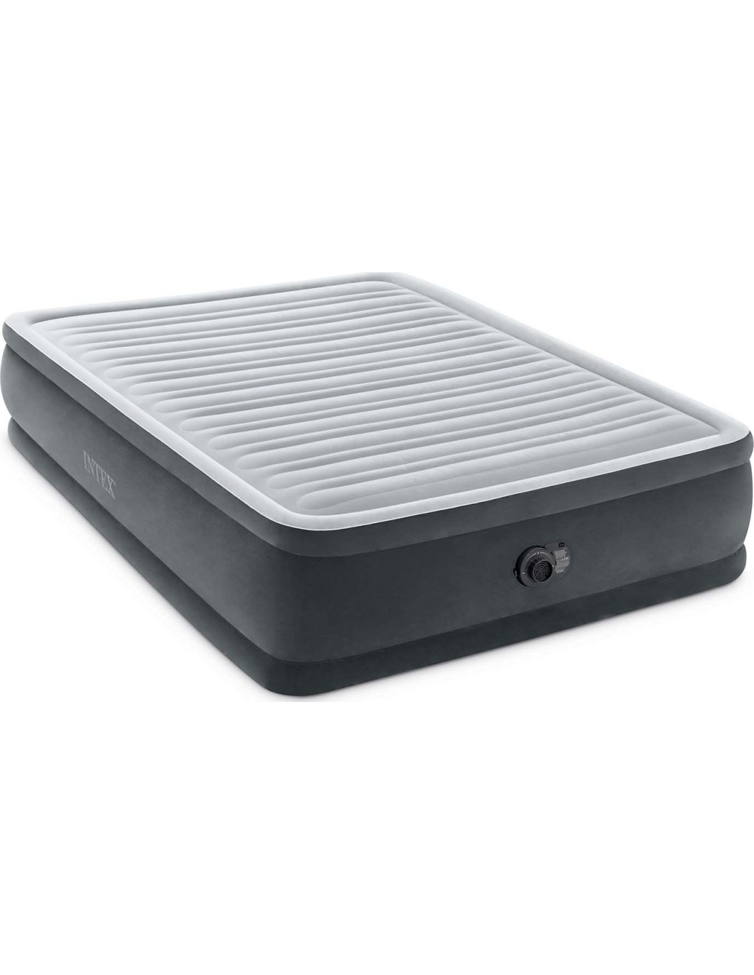Materac welurowy INTEX, o wymiarach 203 x 152 x 46 cm jest idealny dla wypoczynku 2 osób. Wykonany z mocnego, tworzywa PVC, na górze został pokryty przyjemnym w dotyku wodoszczelnym materiałem welurowym. Całość w przyjemnej niebiesko - szarej kolorystyce będzie pasował do każdego wnętrza.Materac w prosty i szybki sposób napompujesz dzięki wbudowanej pompce elektrycznej. Pompka pozwoli w 3 minuty napompować materac oraz w 1 minutę spuścić powietrze a następnie złożyć i schować do szafy.