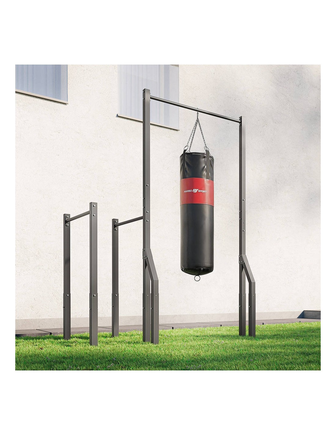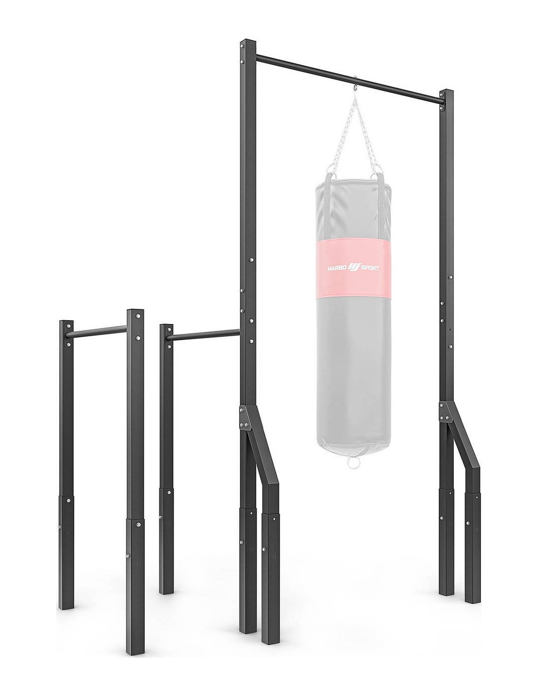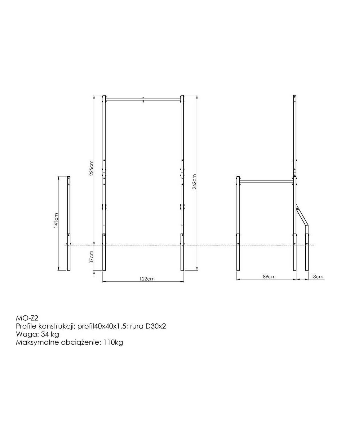 - wszechstronnością – podciągaj się na drążku, wykonuj dipy na poręczach albo podwieś swój ulubiony worek bokserski. To wszystko możesz zrobić na jednej konstrukcji;