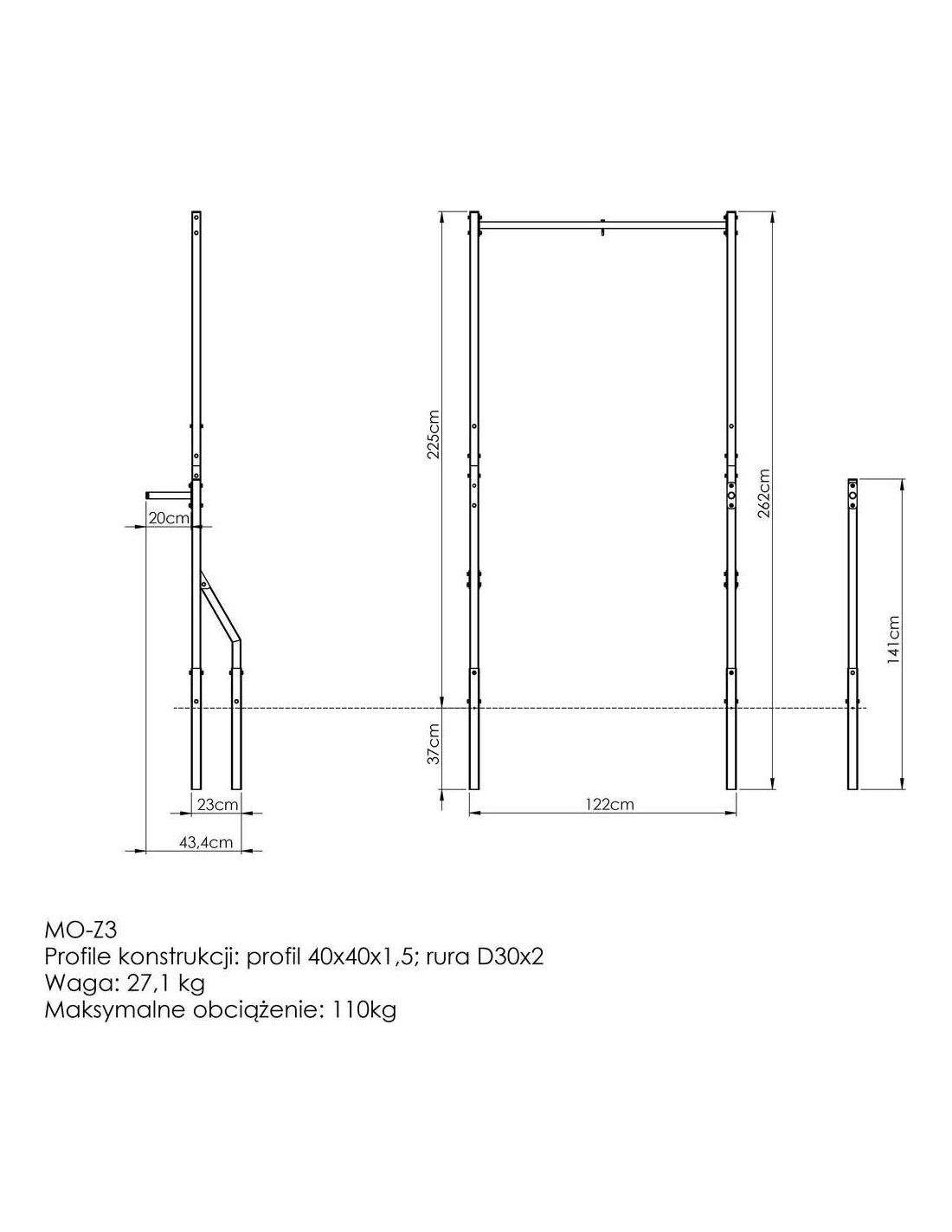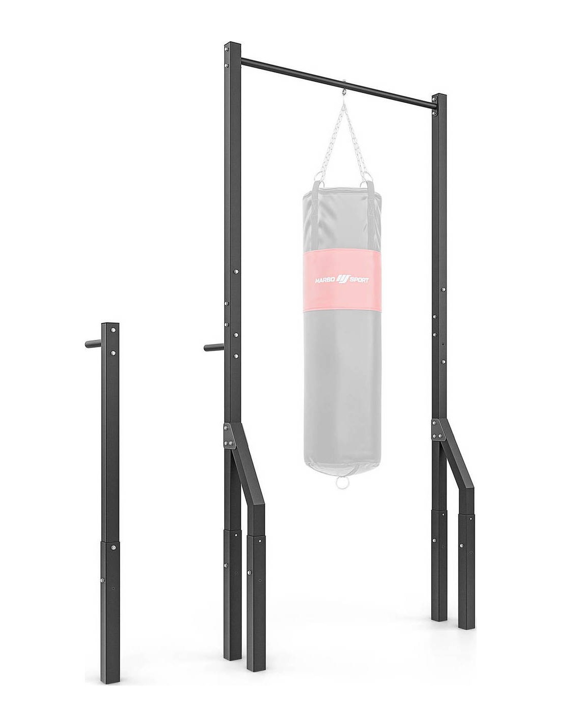 - wszechstronnością – podciągaj się na drążku, wykonuj dipy na poręczach albo podwieś swój ulubiony worek bokserski. To wszystko możesz zrobić na jednej konstrukcji;