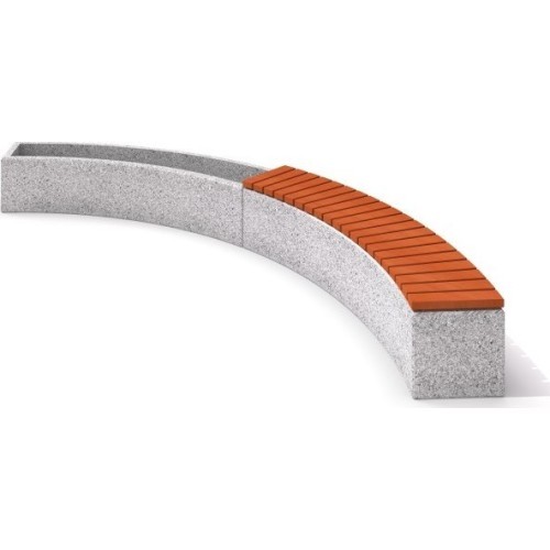 Rinsed concrete bench available in 7 colours without backrest. Bench in a shape of arc. Seat is made of wood. The bench i good choice for comfortable and good looking urban furniture to park, estete etc. Construction of this bench makes the impression of light and aesthetic furniture, best for urban space.