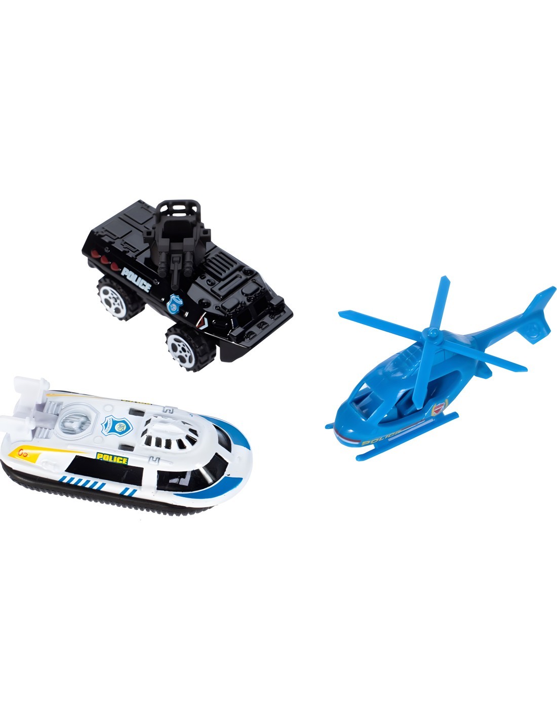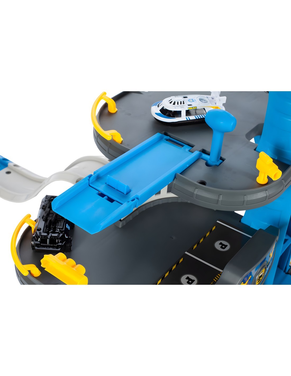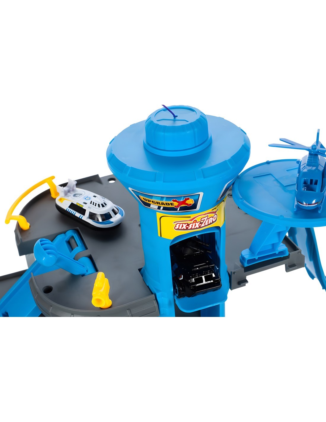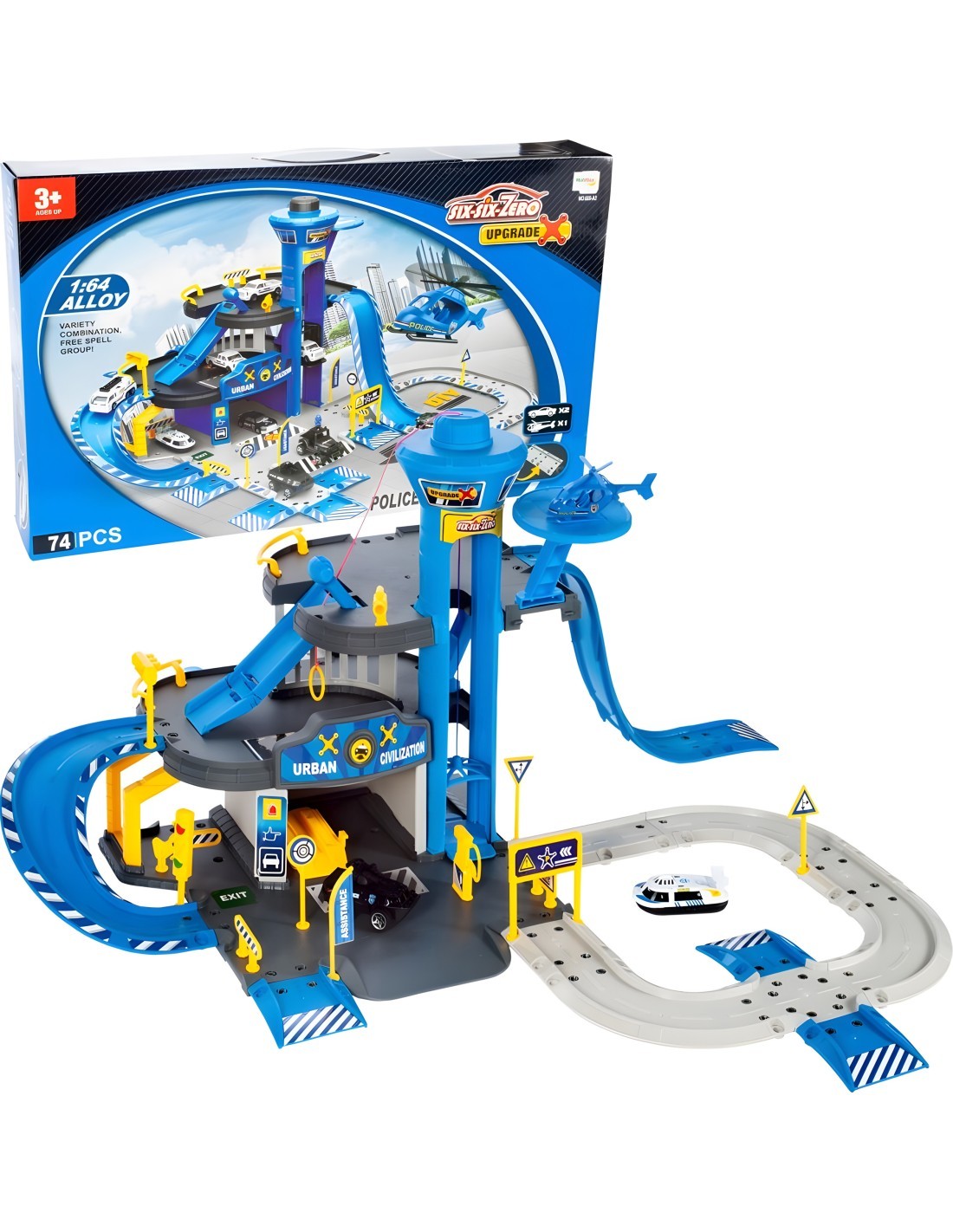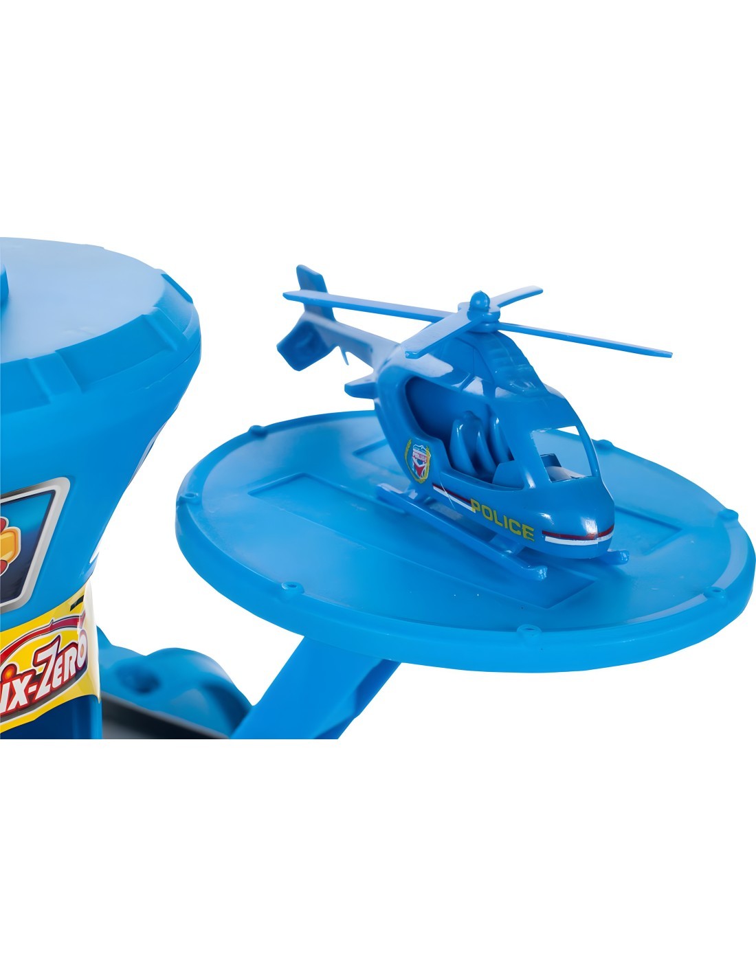 W zestawie z garażem znajdują się 2 samochodziki oraz helikopter.