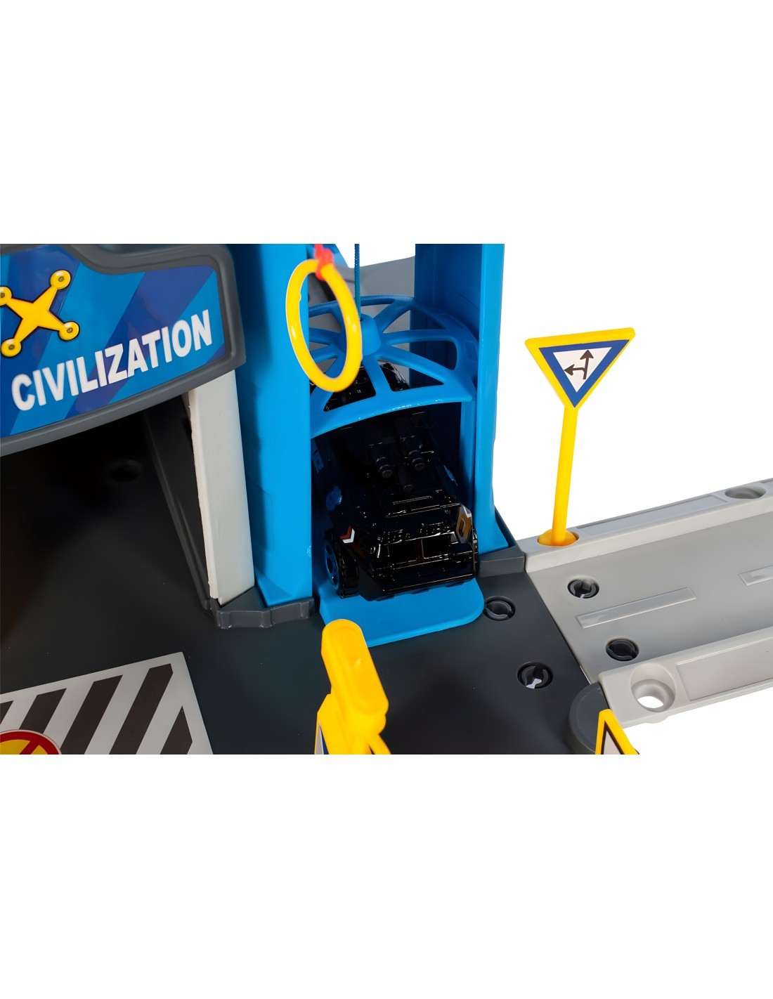 Zabawkowy garaż samochodowy zawiera wszystko, co potrzebne małemu kierowcy: