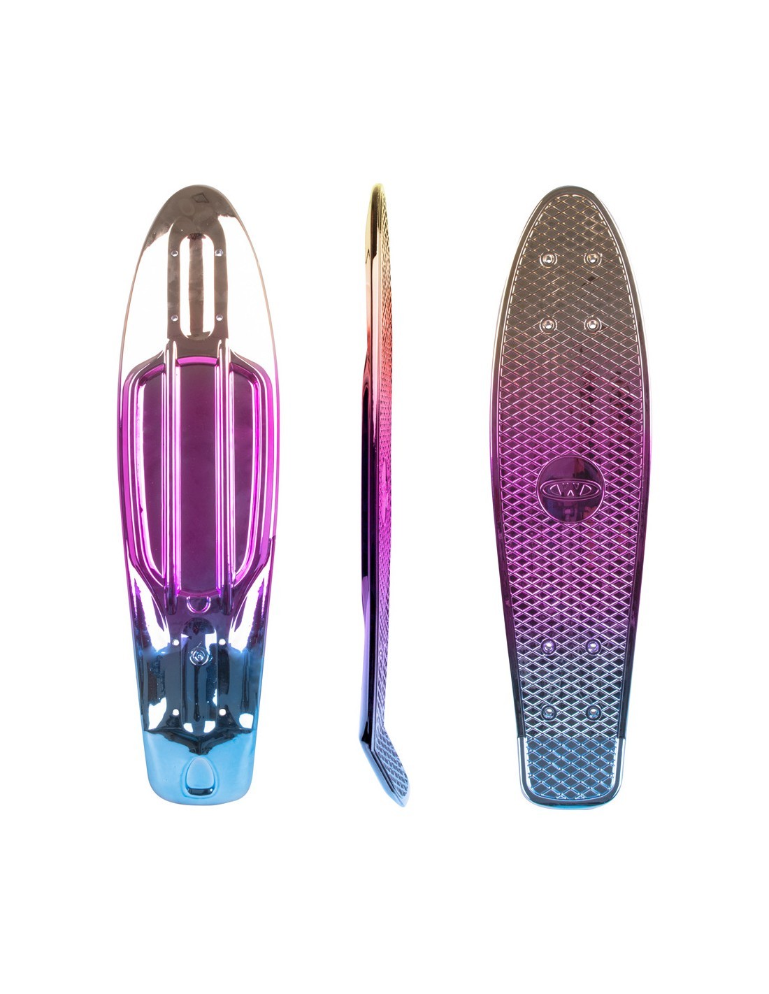 Penny Board klājs WORKER Mirria 22,5*6" ir izturīgs plastmasas klājs ar unikālu spīdīgu/hromētu dizainu. Piestiprinot šo klāju, jūs iegūstat penny board dēli, kas ir ideāli piemērots braukšanai pilsētā un apbraukšanai pa pilsētiņu. Virsējā klāja neslīdošā saķeres lente novērš braucēja slīdēšanu.