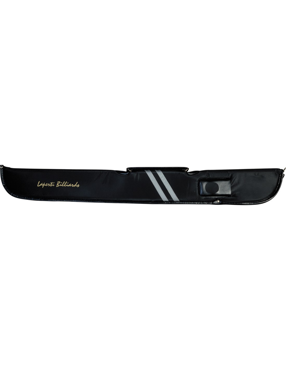 Populaire keutas van Laperti in retro sports-look, uitgevoerd in zacht vinyl met ritssluiting, geschikt voor 1 tweedelige keu. Uitgevoerd met apart compartiment voor naamplaatje. Vrij stijve lichtgewicht tas met binnenvoering van vilt voor extra bescherming voor uw keu.
