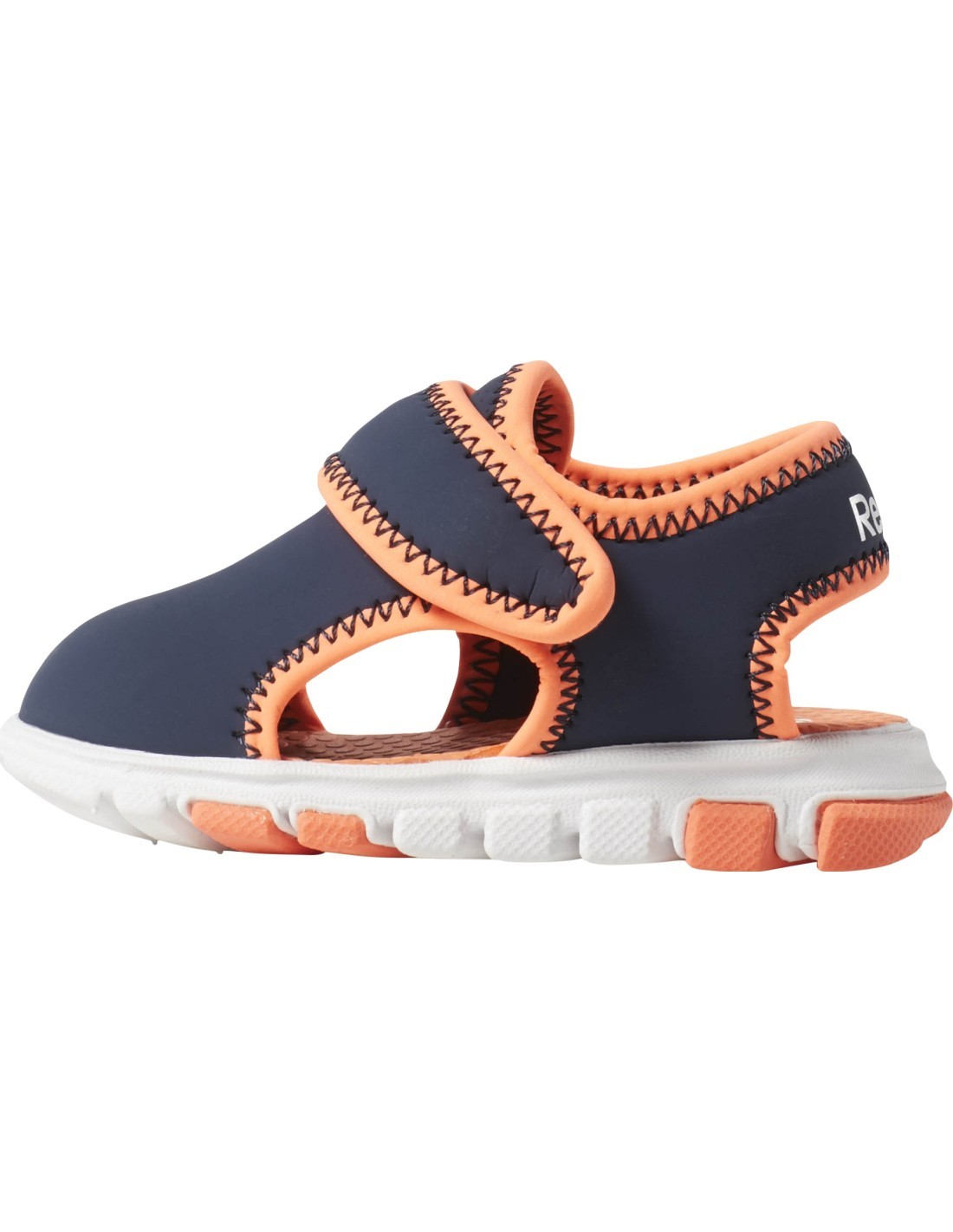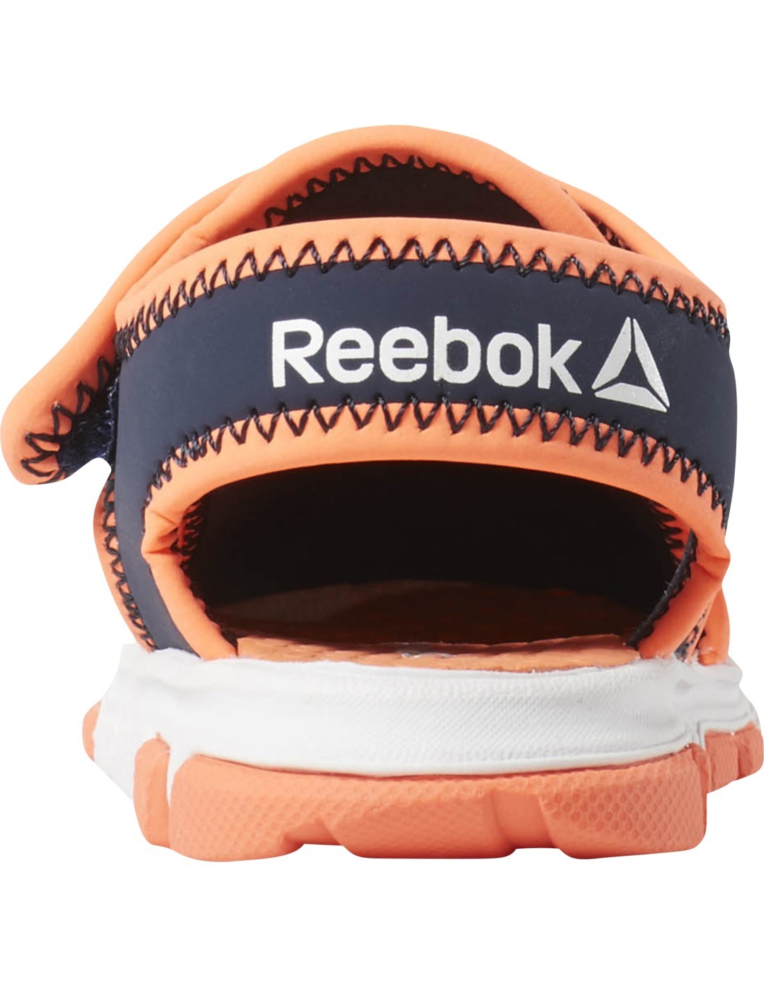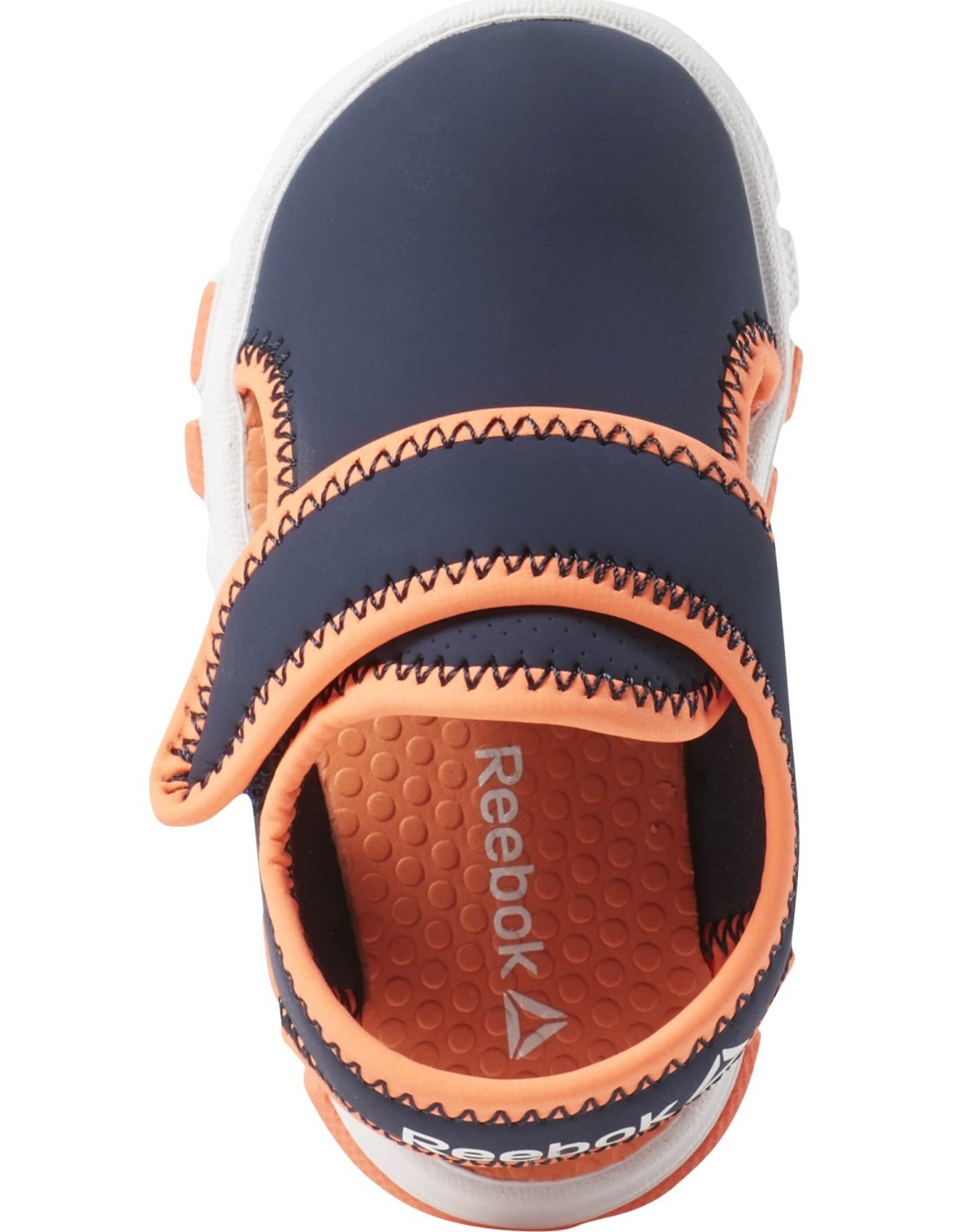 Reebok sandalai vaikams. Minkšti, lengvi. Reguliuojamas Velcro tipo dirželis, neslidus ir nepaliekantis žymių guminis padas. EVA pagalvėlių sistema užtikrina tinkamą amortizaciją ir atramą vaiko pėdai, neprideda svorio bateliams.