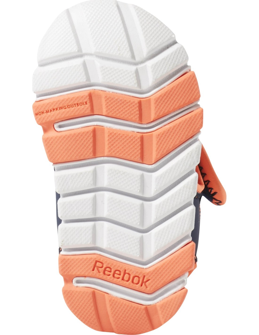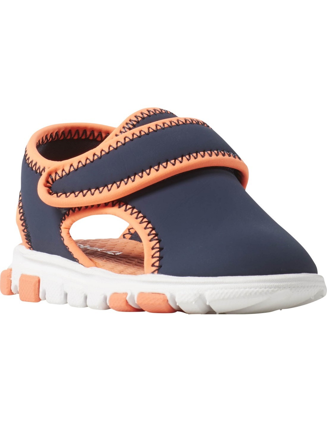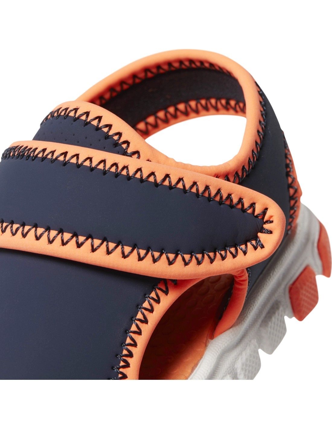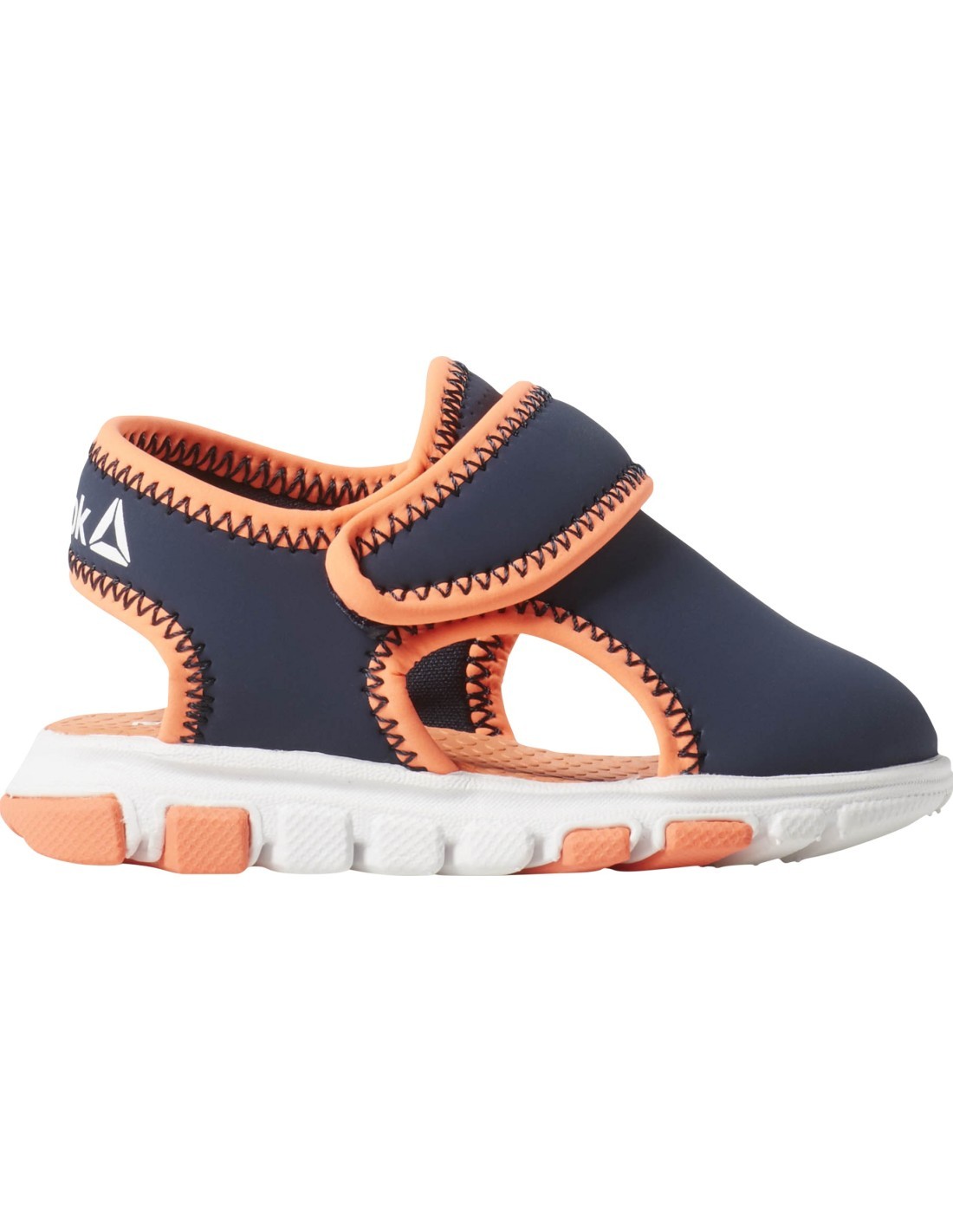 Reebok sandalai vaikams. Minkšti, lengvi. Reguliuojamas Velcro tipo dirželis, neslidus ir nepaliekantis žymių guminis padas. EVA pagalvėlių sistema užtikrina tinkamą amortizaciją ir atramą vaiko pėdai, neprideda svorio bateliams.