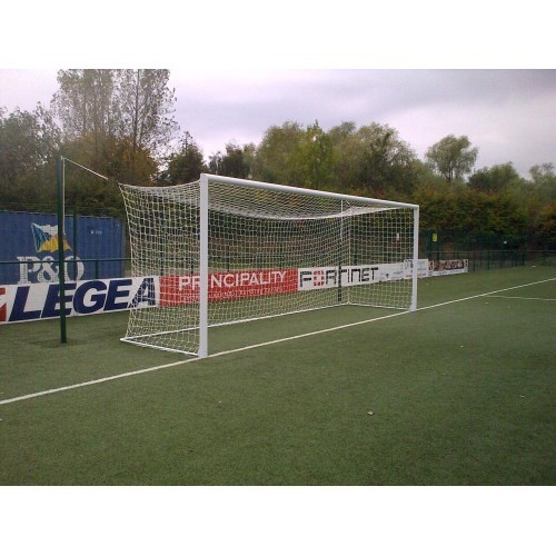 Aliuminiai, įbetonuojami futbolo vartai. Komplekte įbetonuojamos kapsulės su dangteliais, galiniai vartų tinklo įtempimo stulpai ir apatinis tinklo palaikymo rėmas.