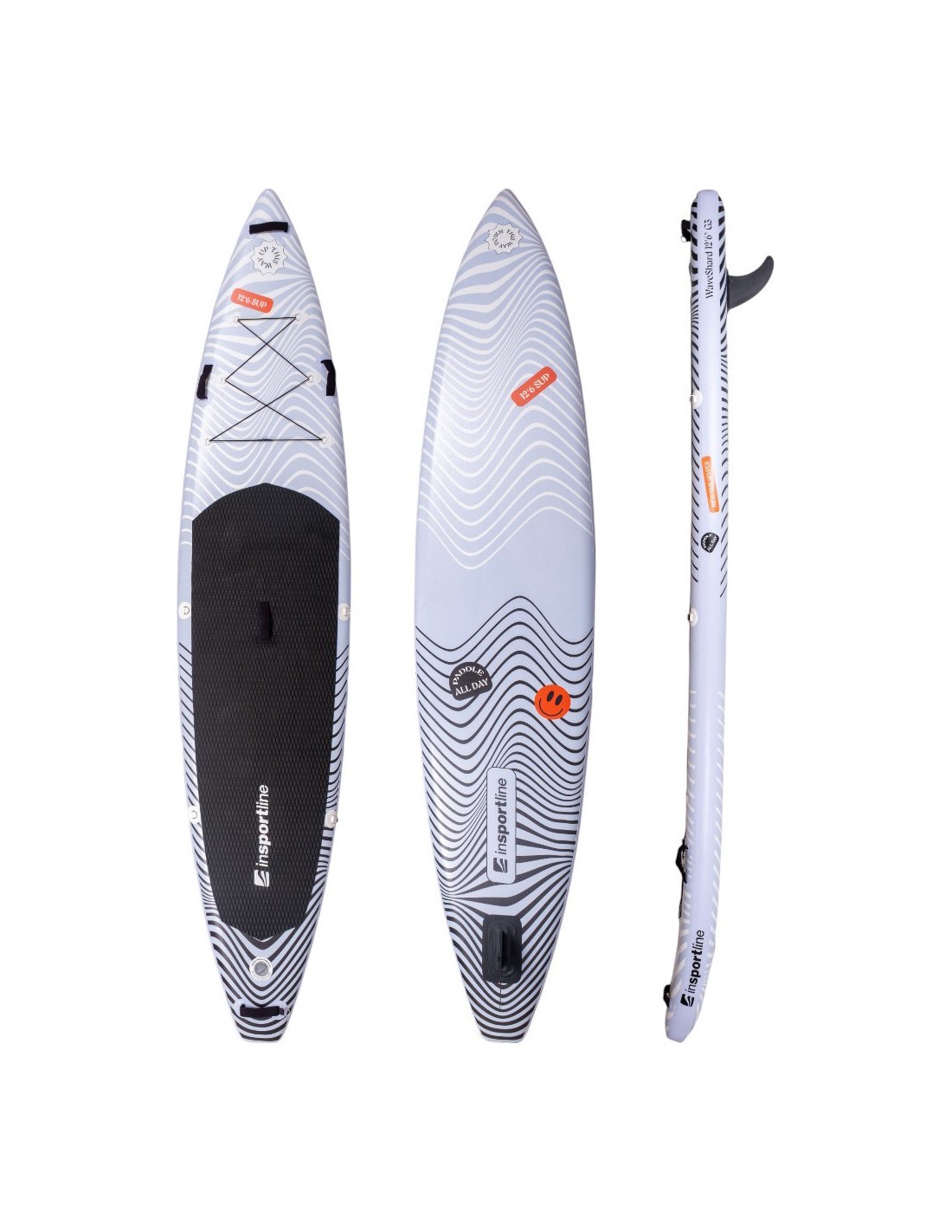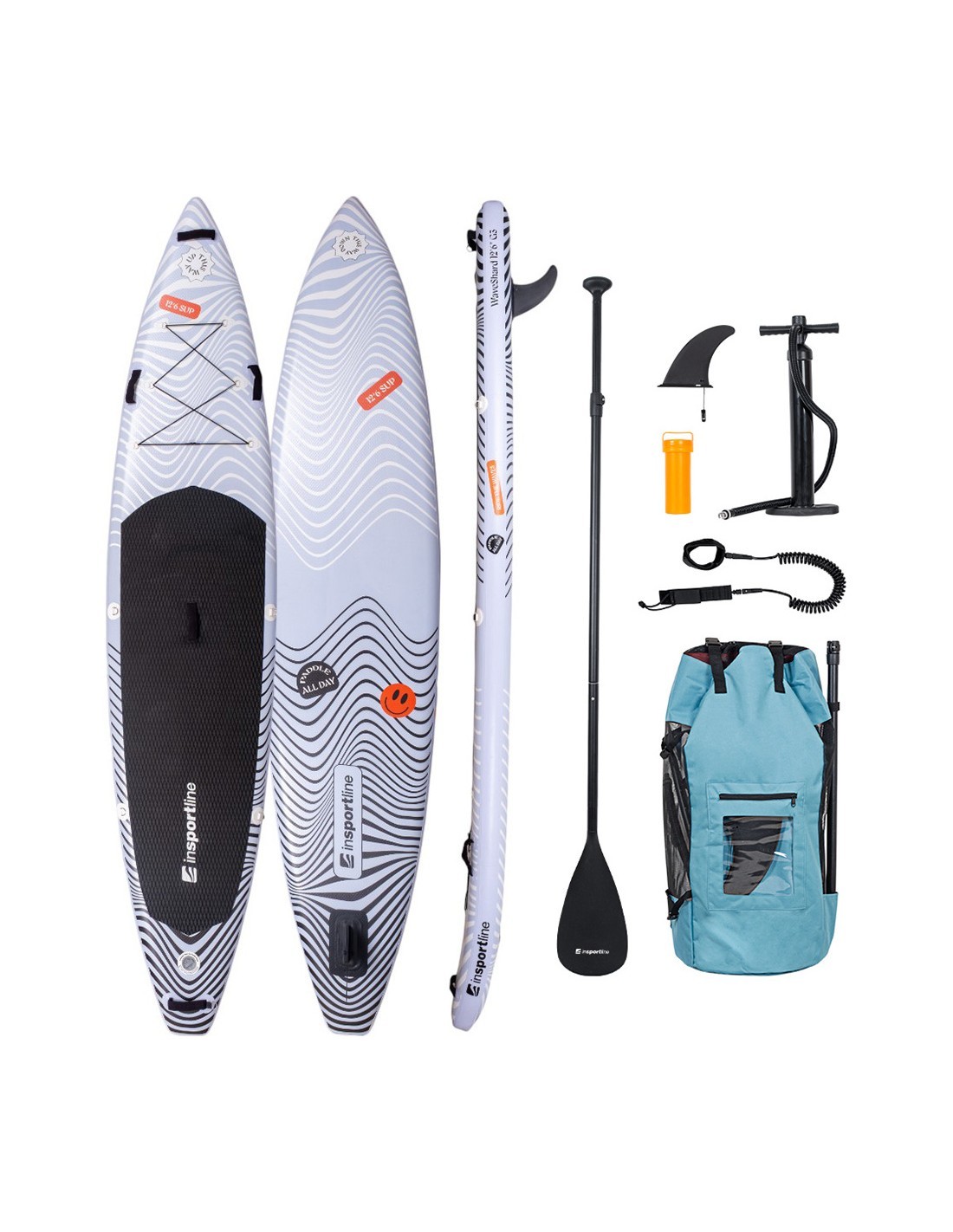 Discover the freedom of movement with this versatile paddle board, which combines speed, stability, stiffness, and comfort. Thanks to its extended profile, drop stitch technology, and anti-slip EVA pad with a diamond pattern, the Paddle Board w/ Accessories inSPORTline WaveShard 12’6” is ideal for both fast rides and longer trips with light cargo. Boasting a load capacity of up to 120 kg, this SUP won’t let you down, whatever the conditions.