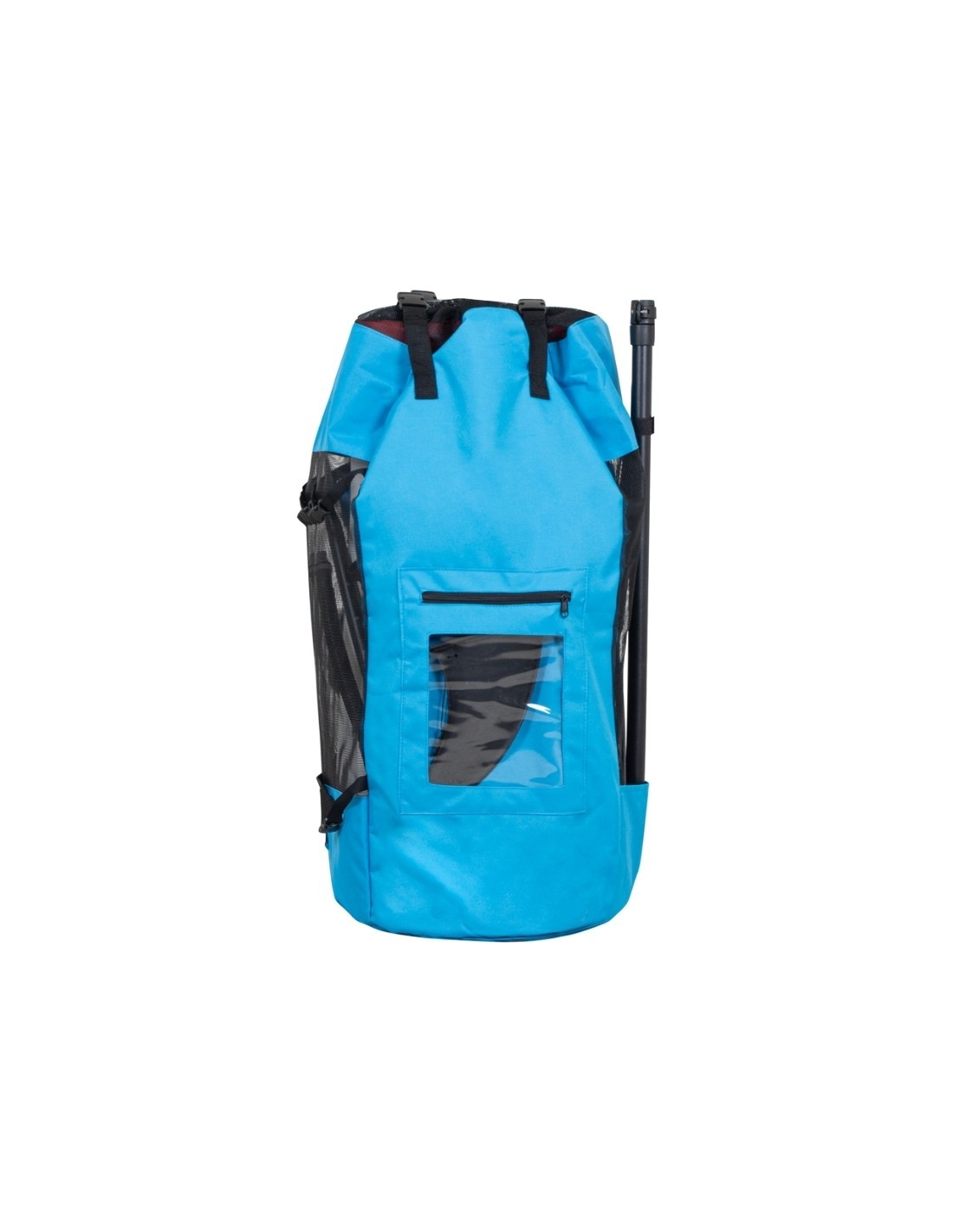The paddle board comes equipped with everything you might need during your water adventures: two aluminum paddles, two leashes, an air pump with a pressure gauge, a repair kit, and a practical backpack for easy transportation.