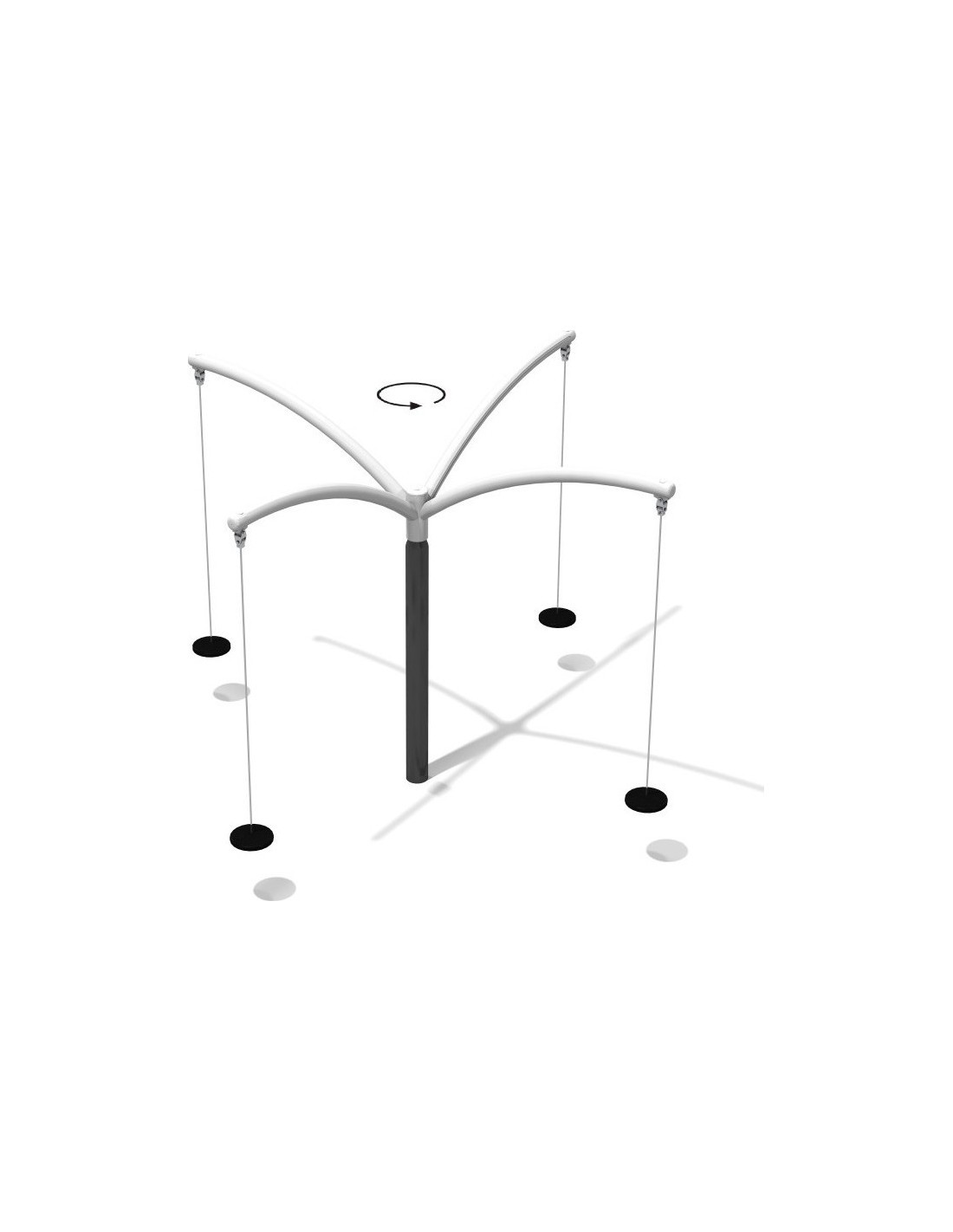 Hanging roundabout with 4 arms and 4 seats suspended on the chains. The upper part is rotating.