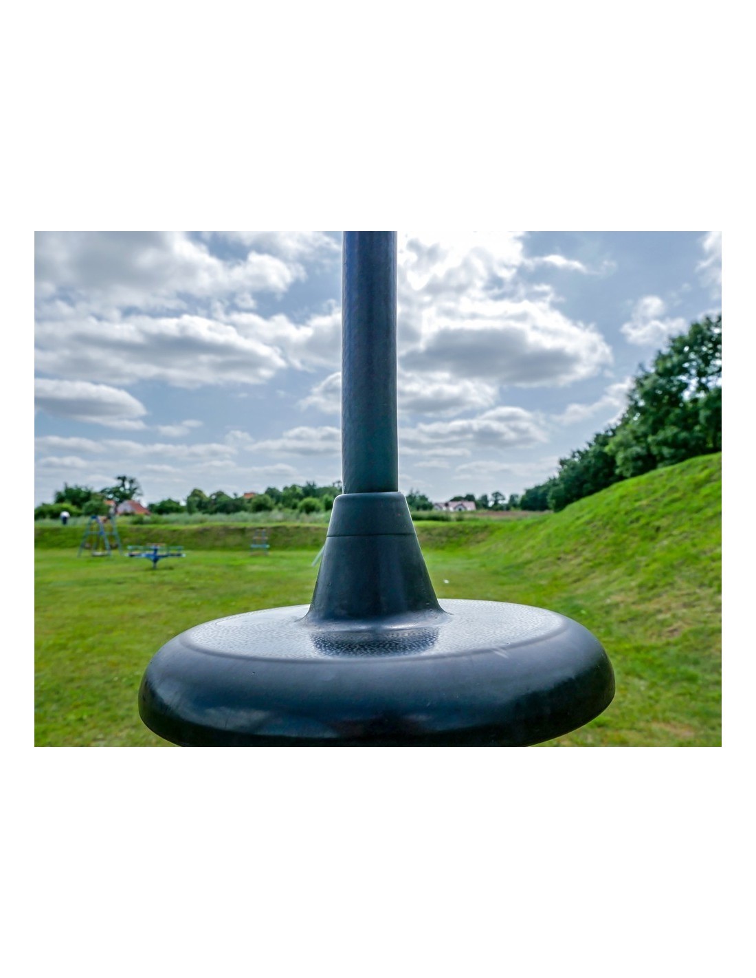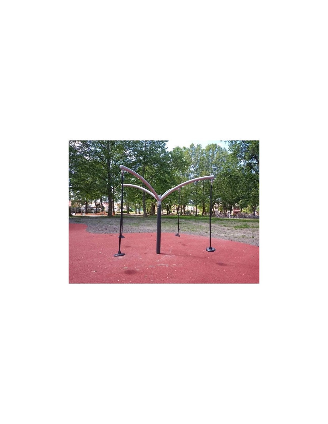 Construction made of galvanized steel and powder painted with round profiles. The seats made of aluminium and cover by rubber. The chains made of galvanized steel.