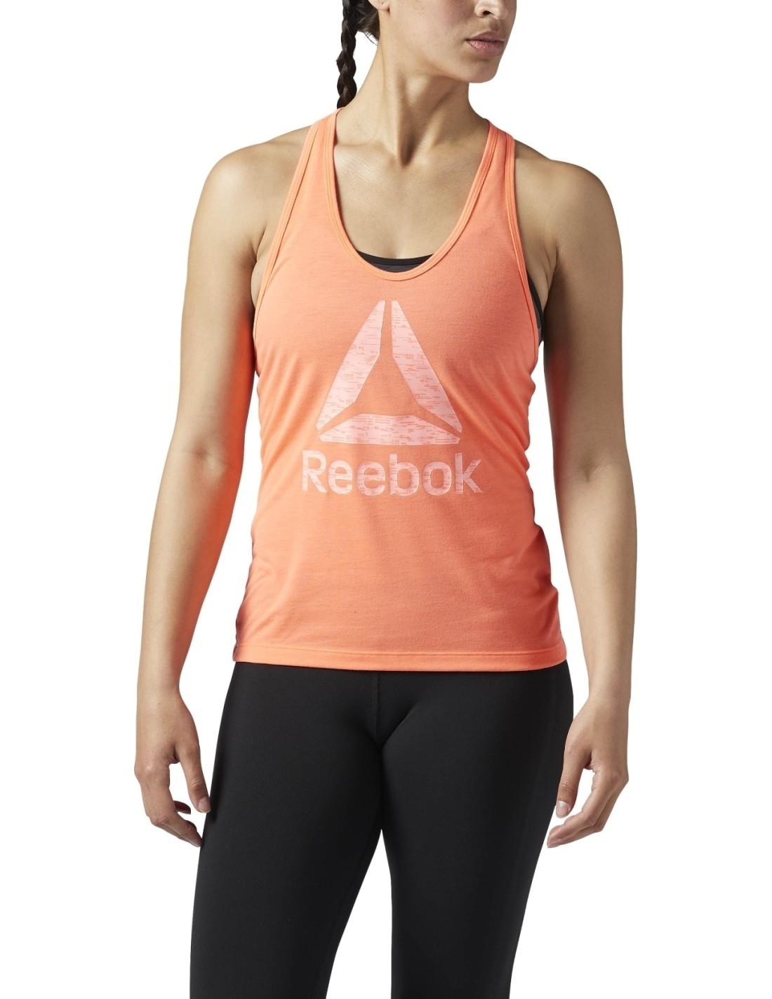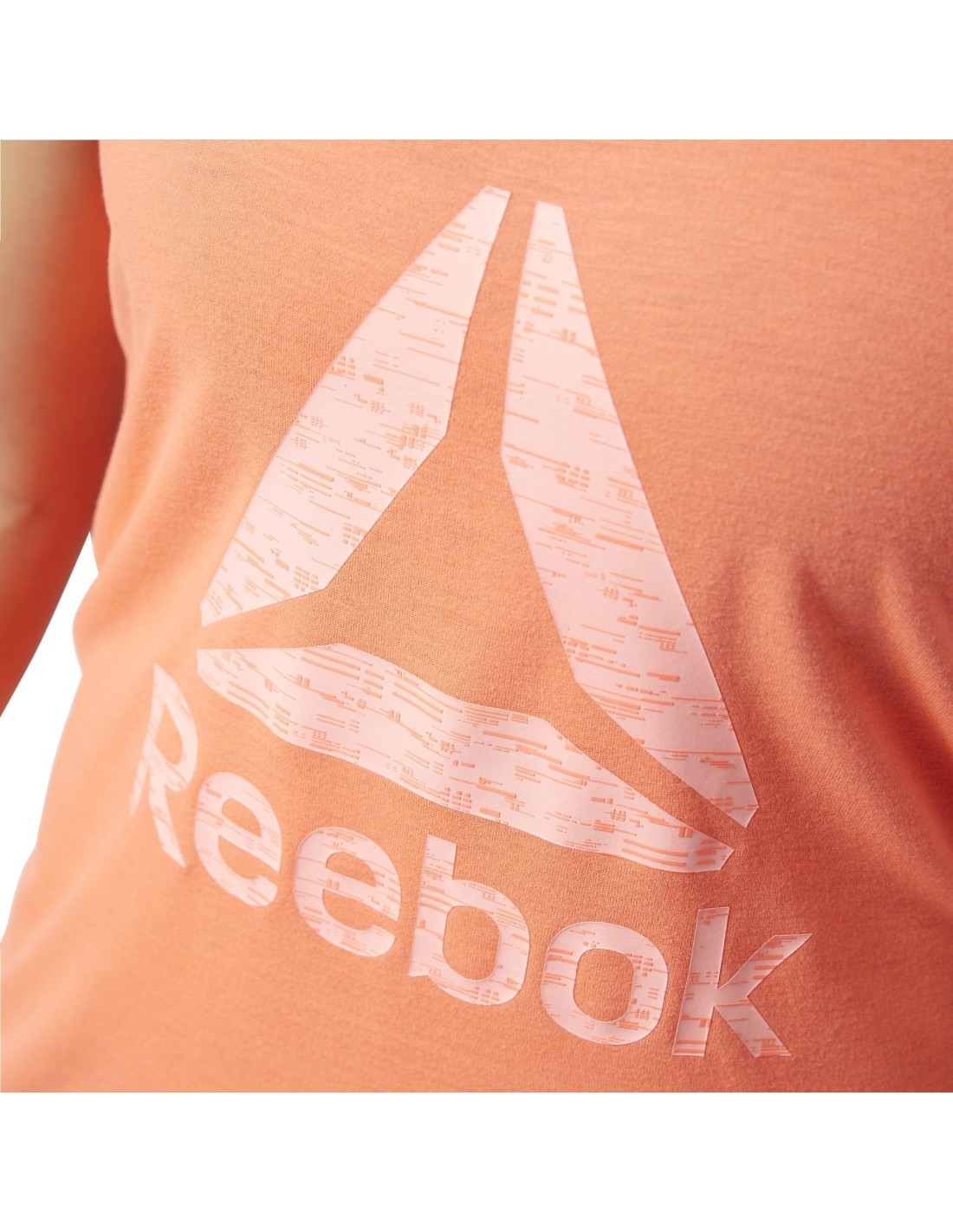 Reebok moteriška palaidinė. Pagaminta iš aukščiausios kokybės medžiagų. SpeedWick technologija padeda greičiau išgarinti prakaitą. ACTIVCHILL technologija palaiko drėgmės cirkuliaciją ir užtikrina puikų oro pralaidumą, nesvarbu kokiomis sąlygomis .Nevaržo judesių, užtikrina komfortą treniruočių metu. SLIM FIT - siauresnio modelio.