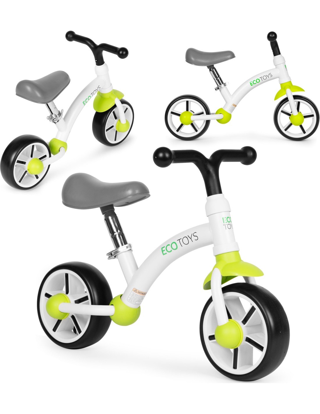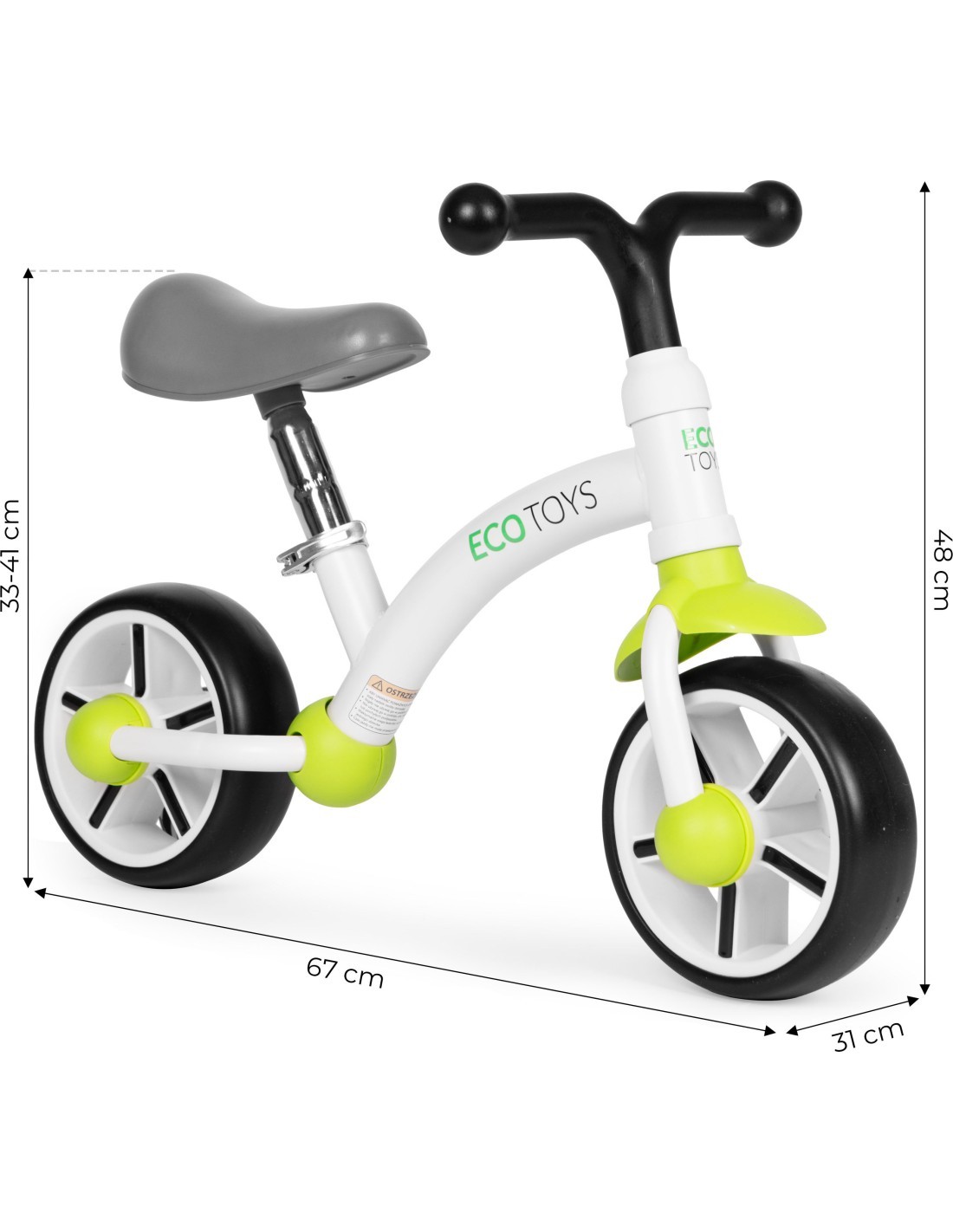Bērnu distanču velosipēds ar EVA riteņiem, seglu regulēšana, zaļš ECOTOYS