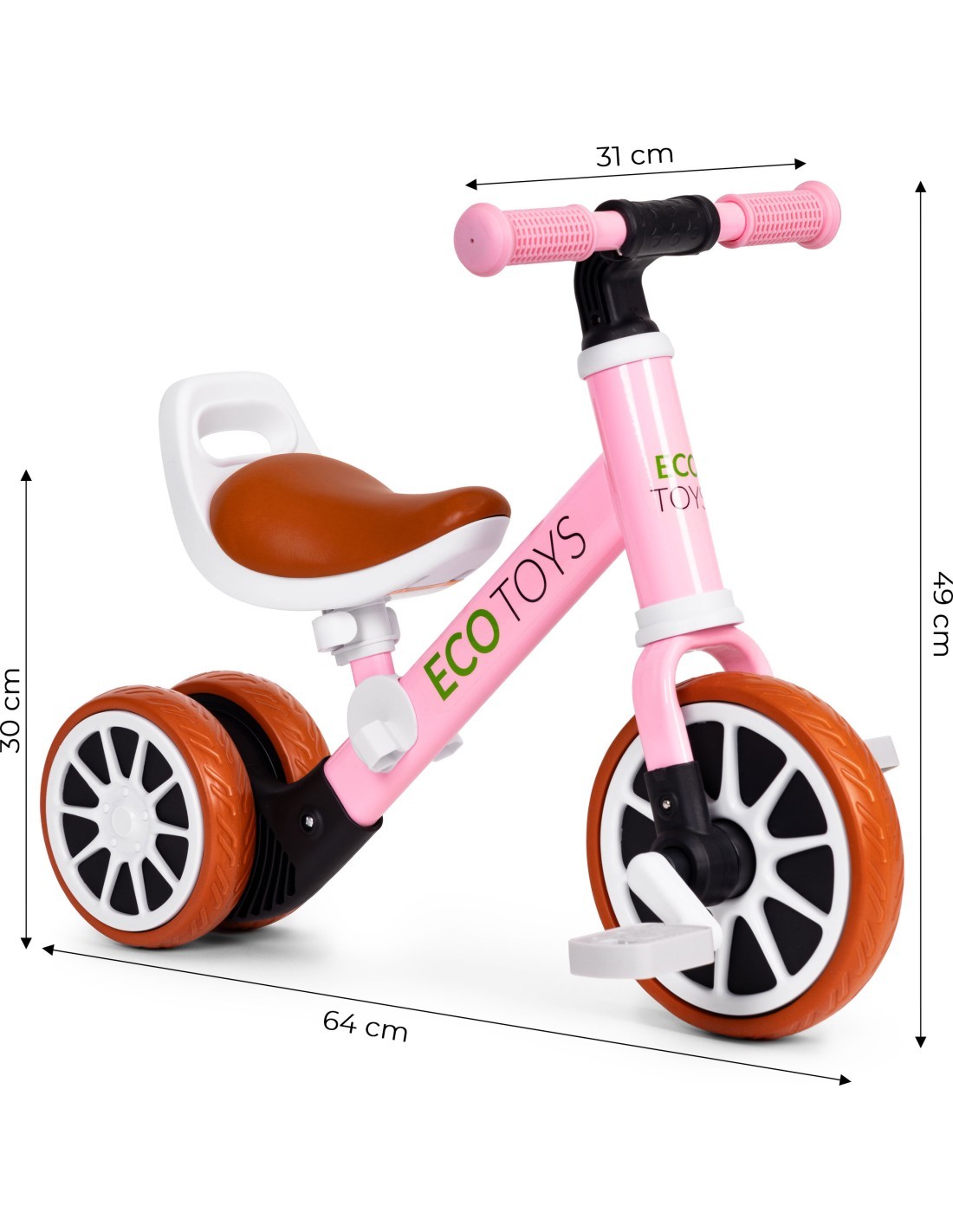 Cross-country trīsritenis ar pedāļiem 2in1 rozā ECOTOYS