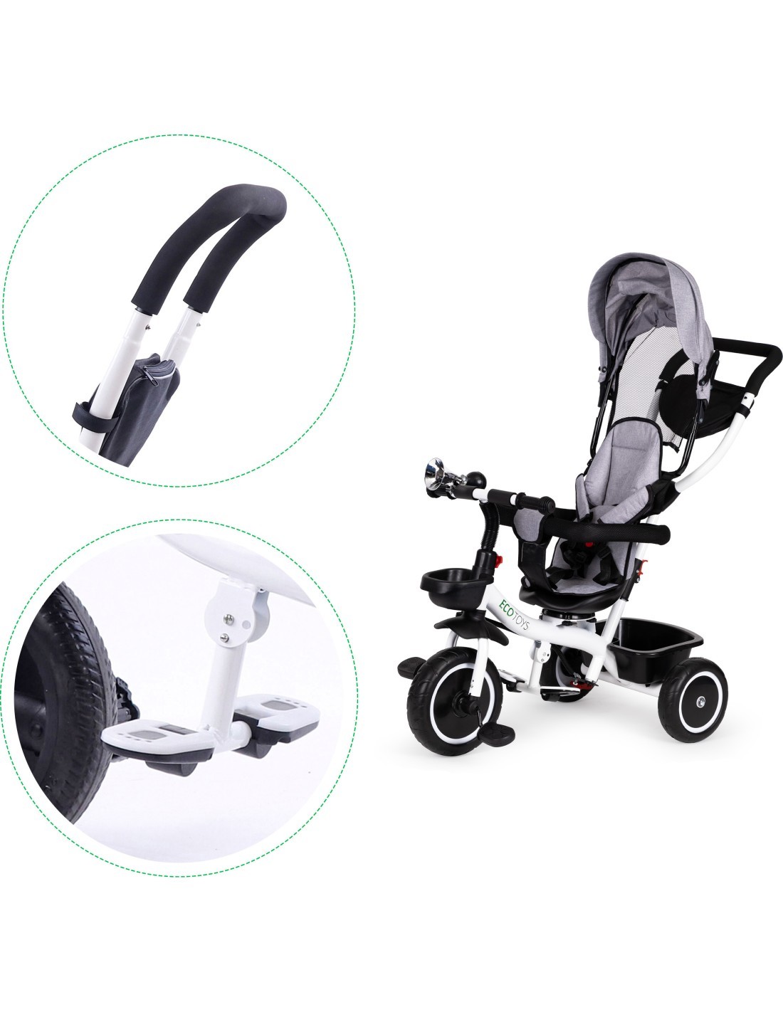 KOMFORT I OCHRONARowerek ECOTOYS łączy w sobie wiele praktycznych rozwiązań, które zapewnią twojemu dziecku wygodną i bezpieczną zabawę. Rowerek posiada miękkie komfortowe oparcie dzięki któremu maluch będzie siedział wygodnie a pasy i barierki zabezpieczą go przed wypadnięciem z siedziska. Składany daszek ochroni przed deszczem i słońcem. Specjalnie wyprofilowana rama oraz obrotowe siedzisko ułatwi wsiadanie najmłodszym dzieciom. |