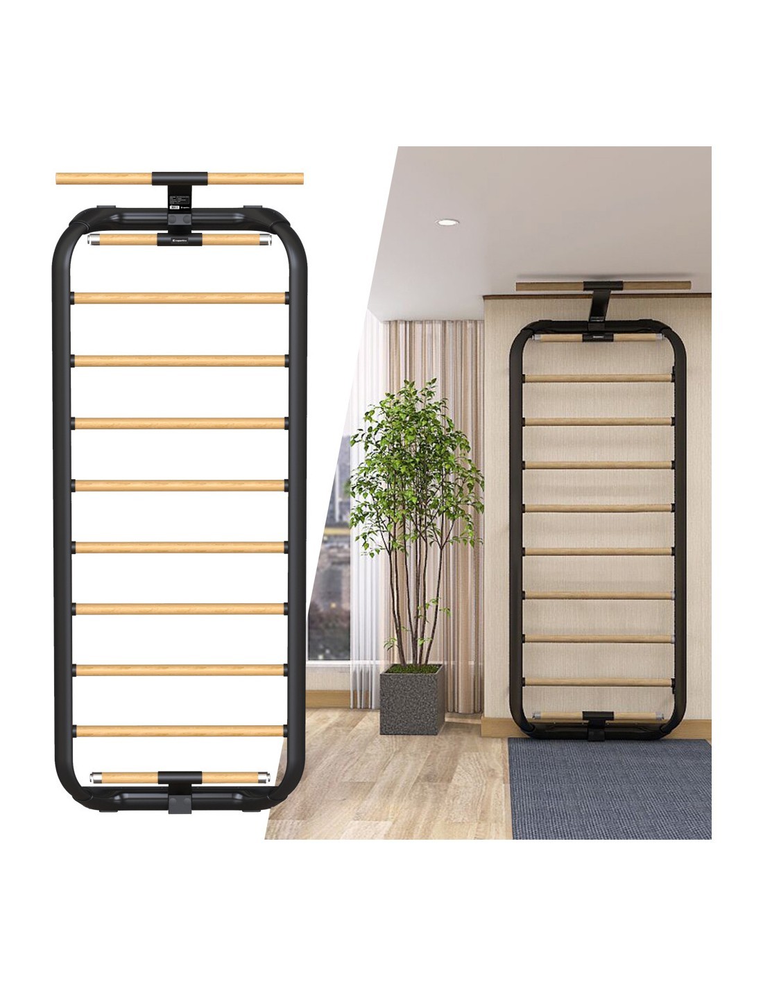 The combination of wood and metal is extremely popular in furniture design. And that’s what the inSPORTline Wootalux wall bars are inspired by. As a result, they will fit right into your home décor, so, when you’re not exercising on them, they become a beautiful accessory.
