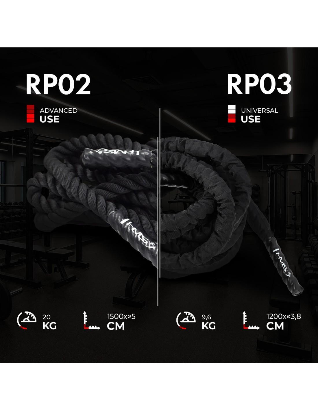 RP02 HMS - веревка. Изделие заканчивается встроенными чехлами для надежного захвата. Высокое качество, прочность и плотное плетение обеспечивают эффективную тренировку в любых условиях.