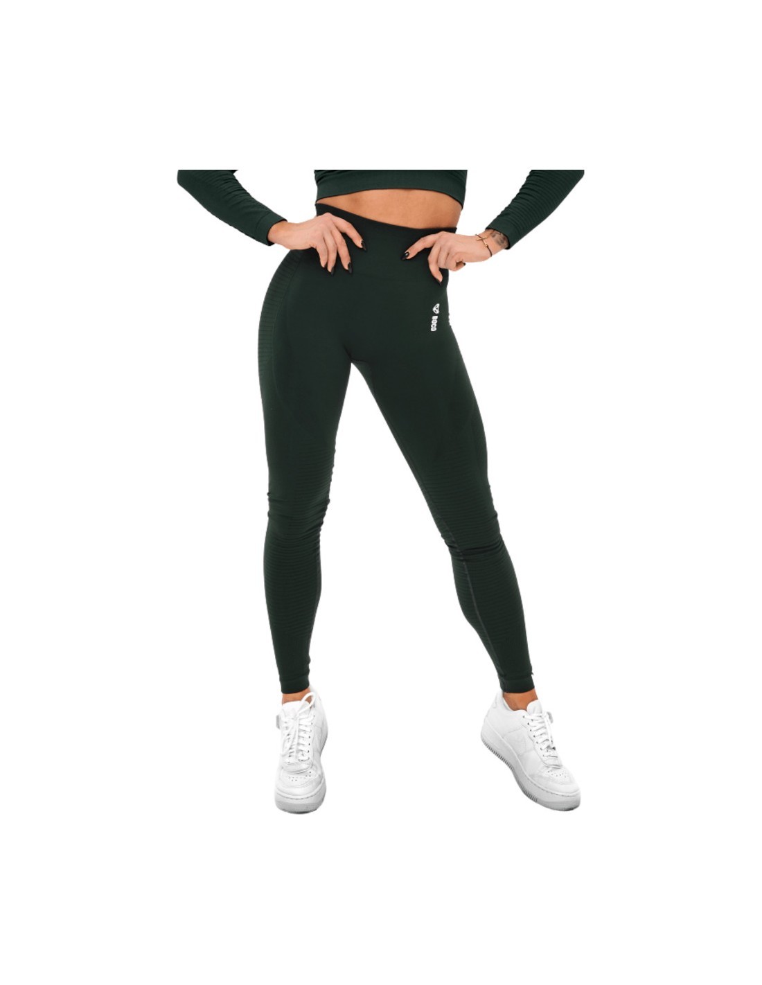 Благодаря оригинальному дизайну и отличным функциональным свойствам Женские леггинсы Boco Wear Bottle Green Cropped станут вашим любимым предметом активной одежды. Эти леггинсы с высокой талией обтягивают живот, подчеркивая ваши изгибы. Благодаря широкому поясу они всегда остаются на месте. При изготовлении леггинсов использовалась бесшовная технология, которая предотвращает натирание и раздражение, обеспечивая комфорт даже во время самых сложных тренировок. Вы также можете оценить тот факт, что брюки изготовлены из уникальной ткани, которая остается абсолютно непрозрачной даже в растянутом состоянии.