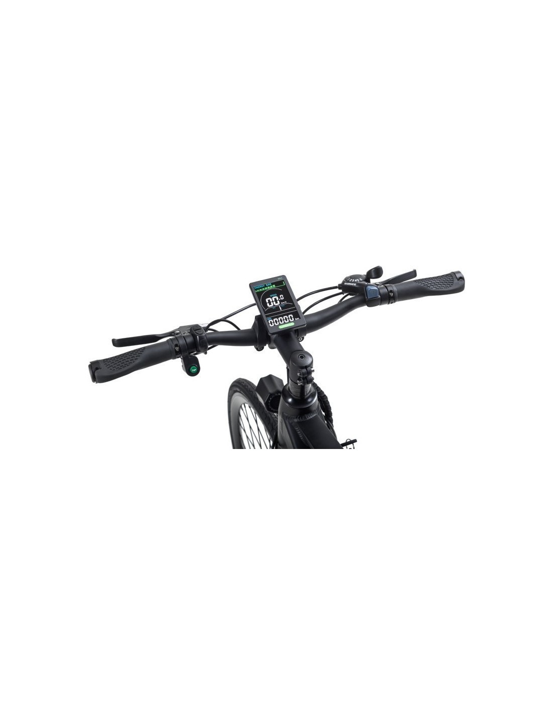 Elektrinis dviratis turi patogų ir ypač informatyvų LCD ekranėlį, kuriame visuomet važiavimo metu galėsite matyti ir sekti savo važiavimo greitį, nuvažiuotą atstumą, el. dviračio mynimo pagalbos lygį (pavarą) bei likusią baterijos įkrovą. Taip pat galėsite reguliuoti dviračio funkcijas bei įjungti priekinius ir galinius žibintus.