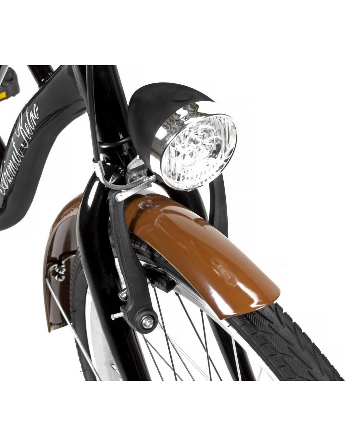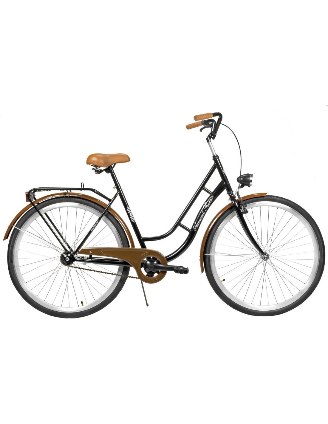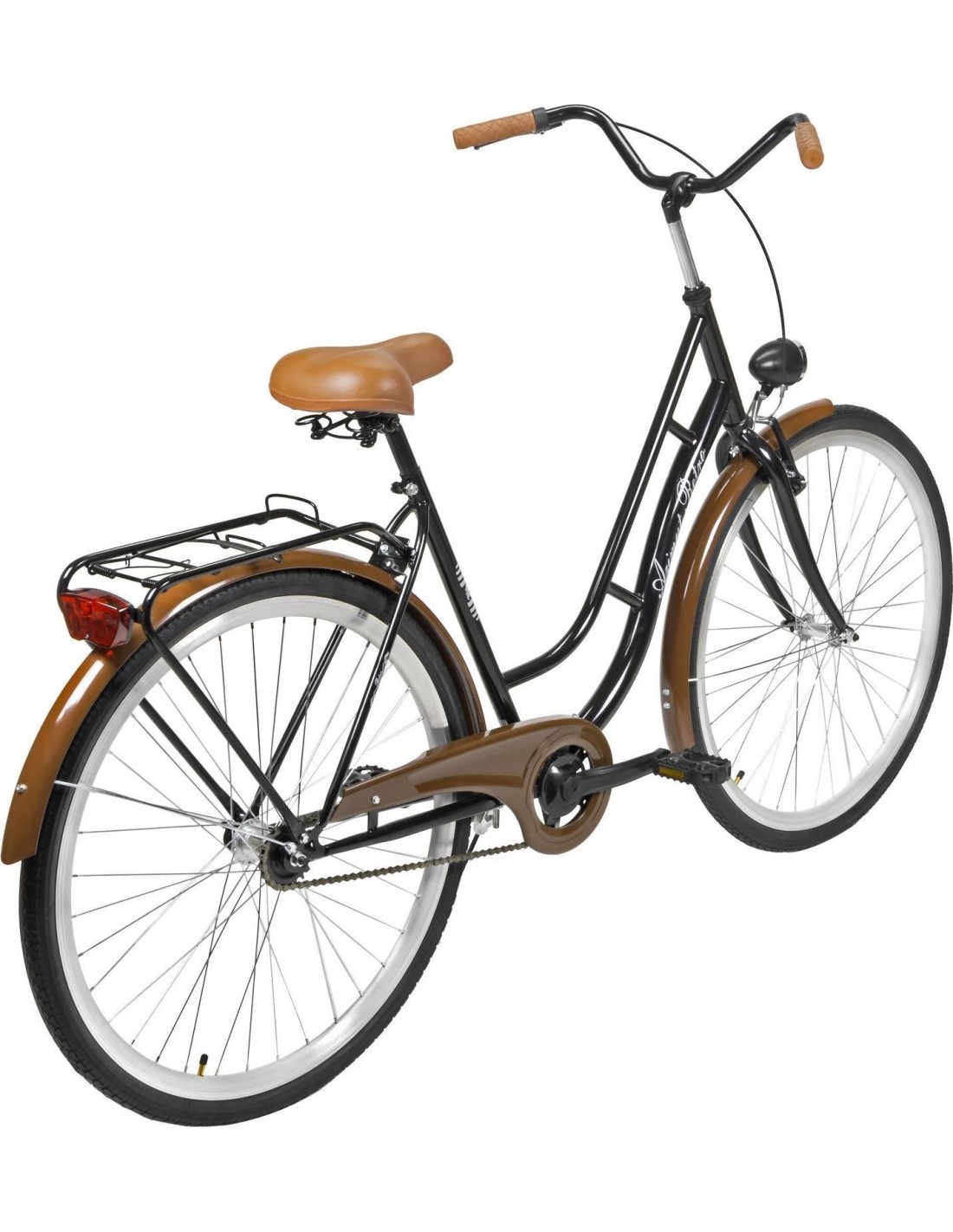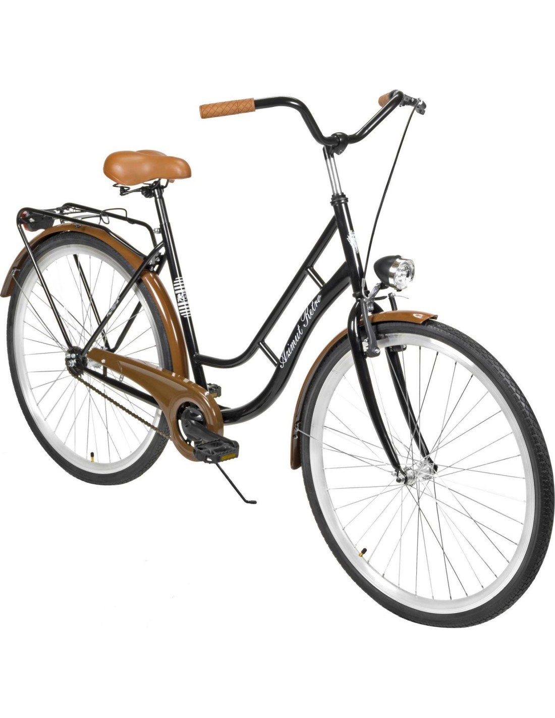 Современные велосипеды Azimut изготавливаются из надежных и высококачественных компонентов, что позволяет обеспечить устойчивость и работоспособность велосипеда в любое время года. Велосипеды производятся в Европе, а широкий ассортимент велосипедов позволяет выбрать оптимальный вариант для людей всех возрастов. AZIMUT Retro - это простой и надежный городской велосипед с колесами 28" и стильной рамой Retro. Он предназначен для эксплуатации в городских условиях и на бездорожье, на асфальте или на твердых гравийных дорогах. Идеальный выбор для тех, кто любит традиционные односкоростные городские велосипеды. Геометрия рамы в городском стиле и изогнутый руль позволяют кататься в расслабленном стиле, сидя почти вертикально. В стандартную комплектацию входят водо- и грязезащитные щитки для защиты от воды и грязи. Чтобы не испачкать одежду во время педалирования и не зацепить ее между цепью и звездочкой, имеется защитный кожух цепи. Разумеется, позаботились и об освещении: передние и задние фонари работают от аккумуляторов. Их можно выключать и включать. Вам не нужно искать столб, стену или забор, чтобы подпереть велосипед - вы можете сложить парковочную ногу. Велосипед также оснащен задним багажником, который вмещает до 6 кг. Мягкое и широкое седло с пружинами, нескользящие пластиковые педали, городские шины шириной 47 мм с универсальным рисунком протектора. Остановите велосипед передним тормозом, нажав на тормозной рычаг на руле, или задним ножным тормозом, отжав педали назад. Вы можете отрегулировать высоту/положение седла и руля в соответствии с вашими потребностями. Оптимально подходит для велосипедистов с ростом около 170 см и выше. Мы рекомендуем приобретать переднюю корзину вместе!