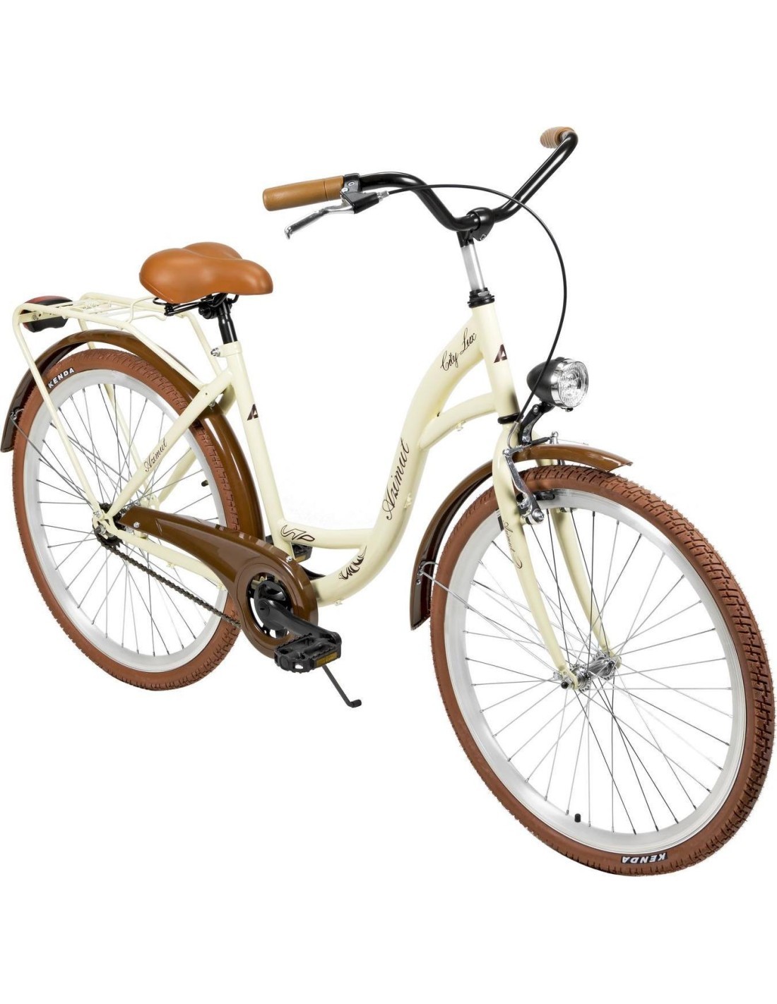 Современные велосипеды Azimut изготавливаются из надежных и высококачественных компонентов, что позволяет обеспечить устойчивость и работоспособность велосипеда в любое время года. Велосипеды производятся в Европе, а широкий ассортимент велосипедов позволяет выбрать оптимальный вариант для людей всех возрастов. AZIMUT CITY LUX - простой и надежный городской велосипед с колесами 26", усиленными двойными ободами и стильной классической рамой. Для использования в городских условиях и на бездорожье, на асфальте или твердых гравийных дорогах. Идеальный выбор для тех, кто любит традиционные односкоростные городские велосипеды. Геометрия рамы в городском стиле и изогнутый руль позволяют кататься в расслабленном стиле, сидя почти вертикально. В стандартную комплектацию входят водо- и грязезащитные щитки для защиты от воды и грязи. Чтобы не испачкать одежду во время педалирования и не зацепить ее между цепью и звездочкой, имеется защитный кожух цепи. Разумеется, позаботились и об освещении: передние и задние фонари работают от аккумуляторов. Их можно выключать и включать. Вам не нужно искать столб, стену или забор, чтобы подпереть велосипед - вы можете сложить парковочную ногу регулируемой длины. Велосипед также оснащен задним багажником. Мягкое и широкое седло с пружинами, нескользящие пластиковые педали, городские шины шириной 47 мм с универсальным рисунком протектора. Остановите велосипед с помощью переднего тормоза, нажав на тормозной рычаг на руле, или с помощью заднего ножного тормоза, крутя педали назад. Вы можете отрегулировать высоту/положение седла и руля в соответствии с вашими потребностями. Оптимально подходит для велосипедистов ростом до 168 см. Мы рекомендуем приобретать переднюю корзину вместе!