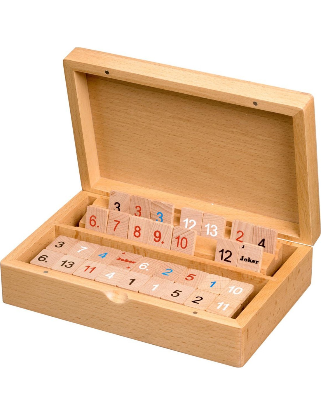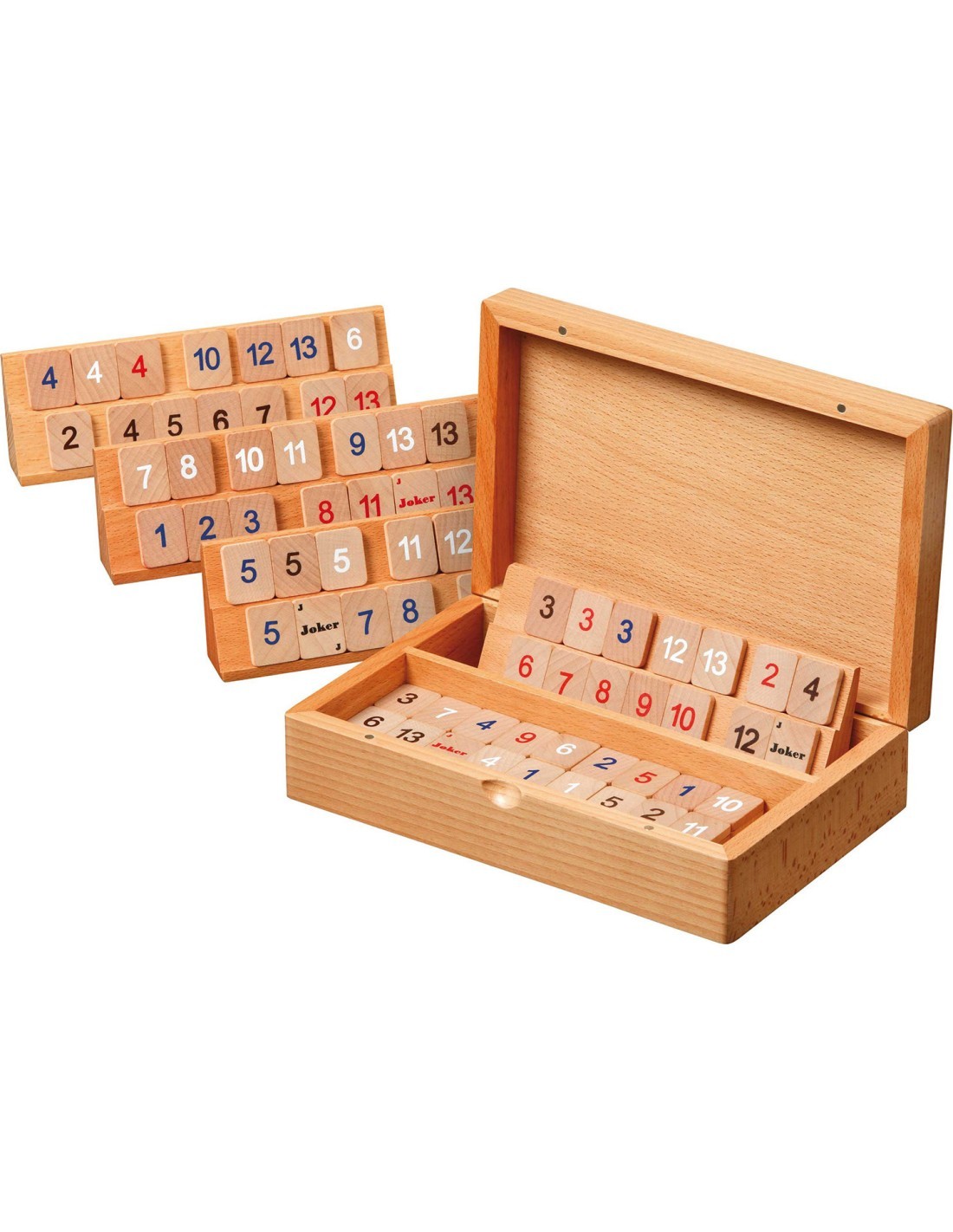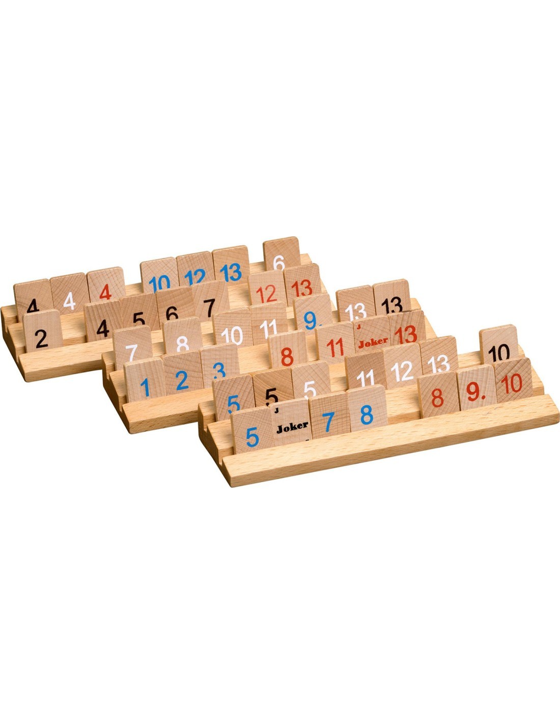 Рамми - это игра для 2-4 игроков. Она состоит из 106 плиток: 4 набора пронумерованных плиток от 1-13, каждый набор разного цвета, и 2 джокера. Игра заканчивается, когда один из игроков сбросит все свои плитки.