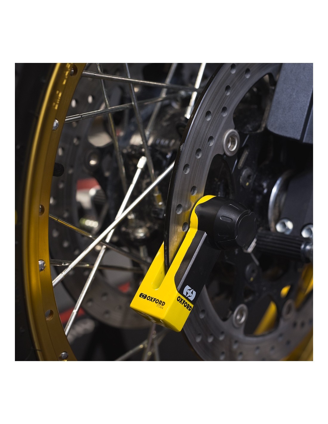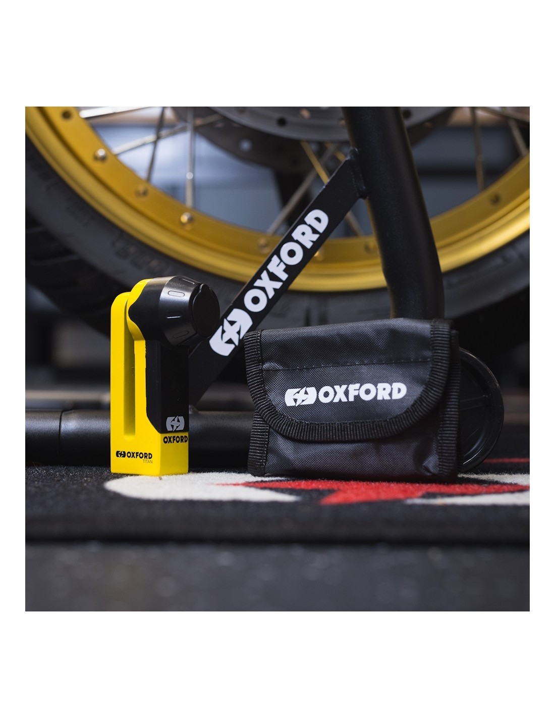 The Disc Brake Lock Oxford Titan is a robust steel lock that quickly immobilizes your motorcycle, thus providing secure protection against potential theft.