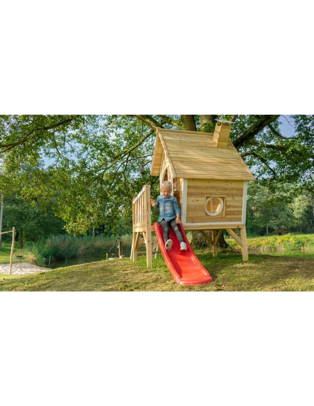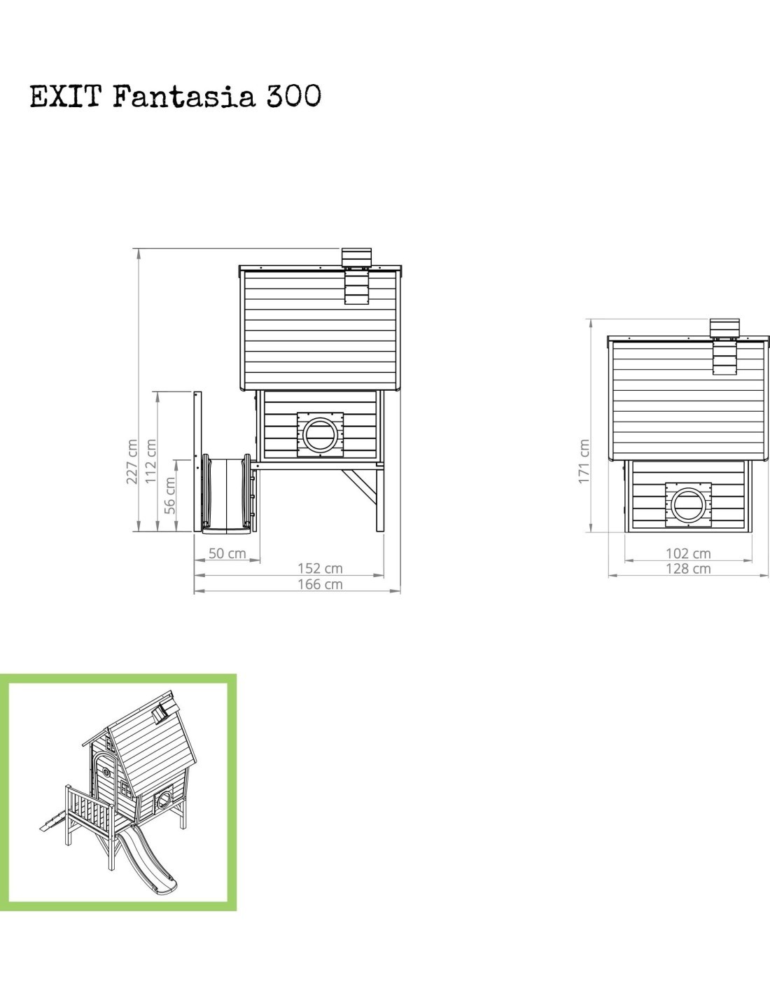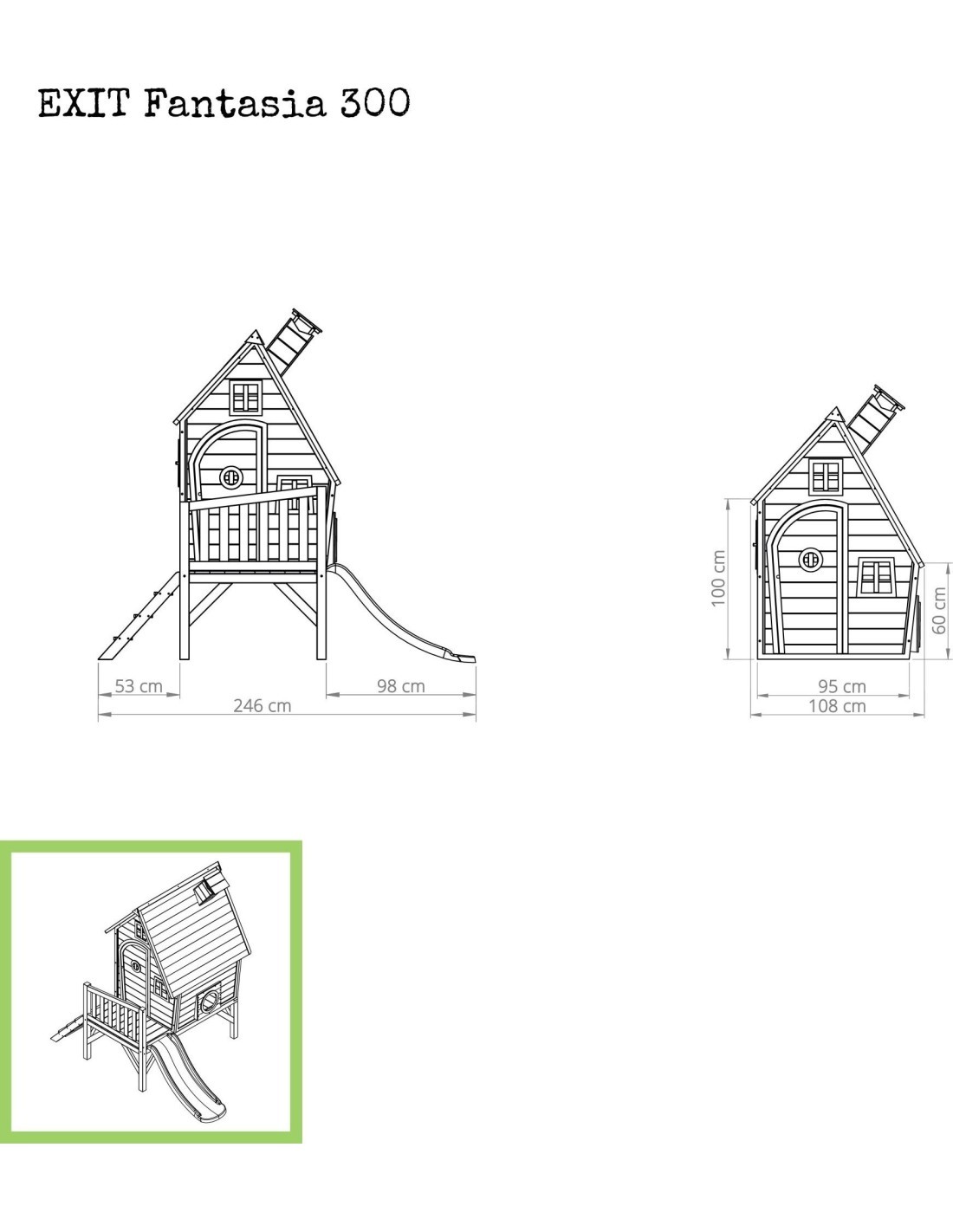 Каждый ребенок чувствует себя как дома в натуральном деревянном игровом домике EXIT Fantasia 300. Вы становитесь жизнерадостным, просто глядя на эти игровые домики. Этот игровой домик EXIT Fantasia стоит на ножках и имеет красивую горку. Деревянный игровой домик легко построить с помощью сборных панелей.