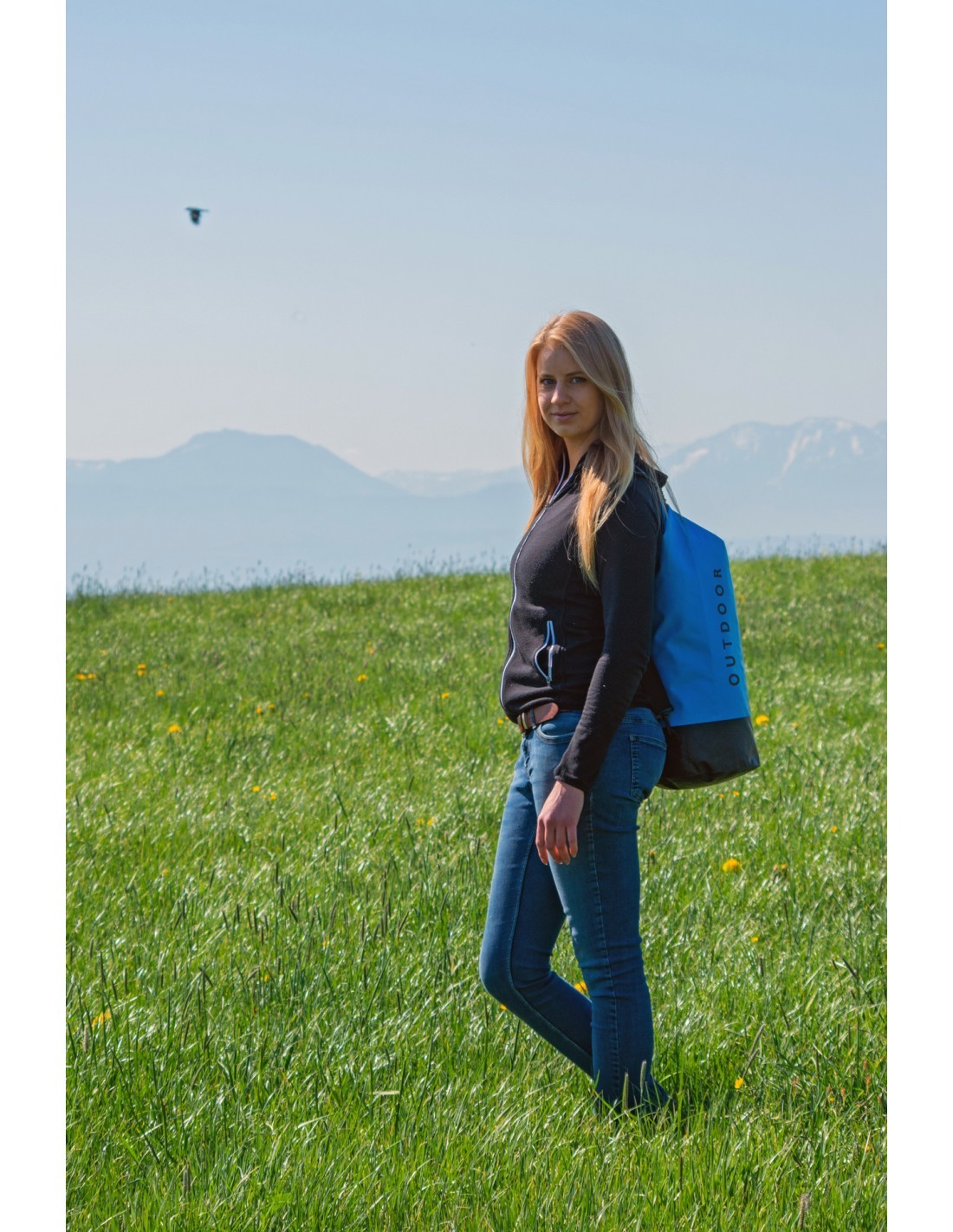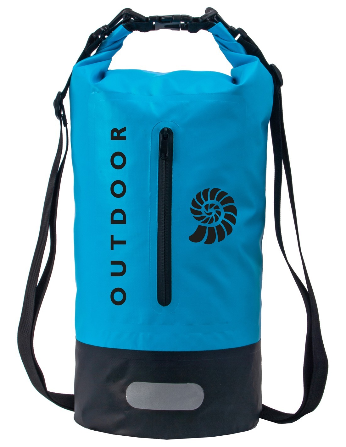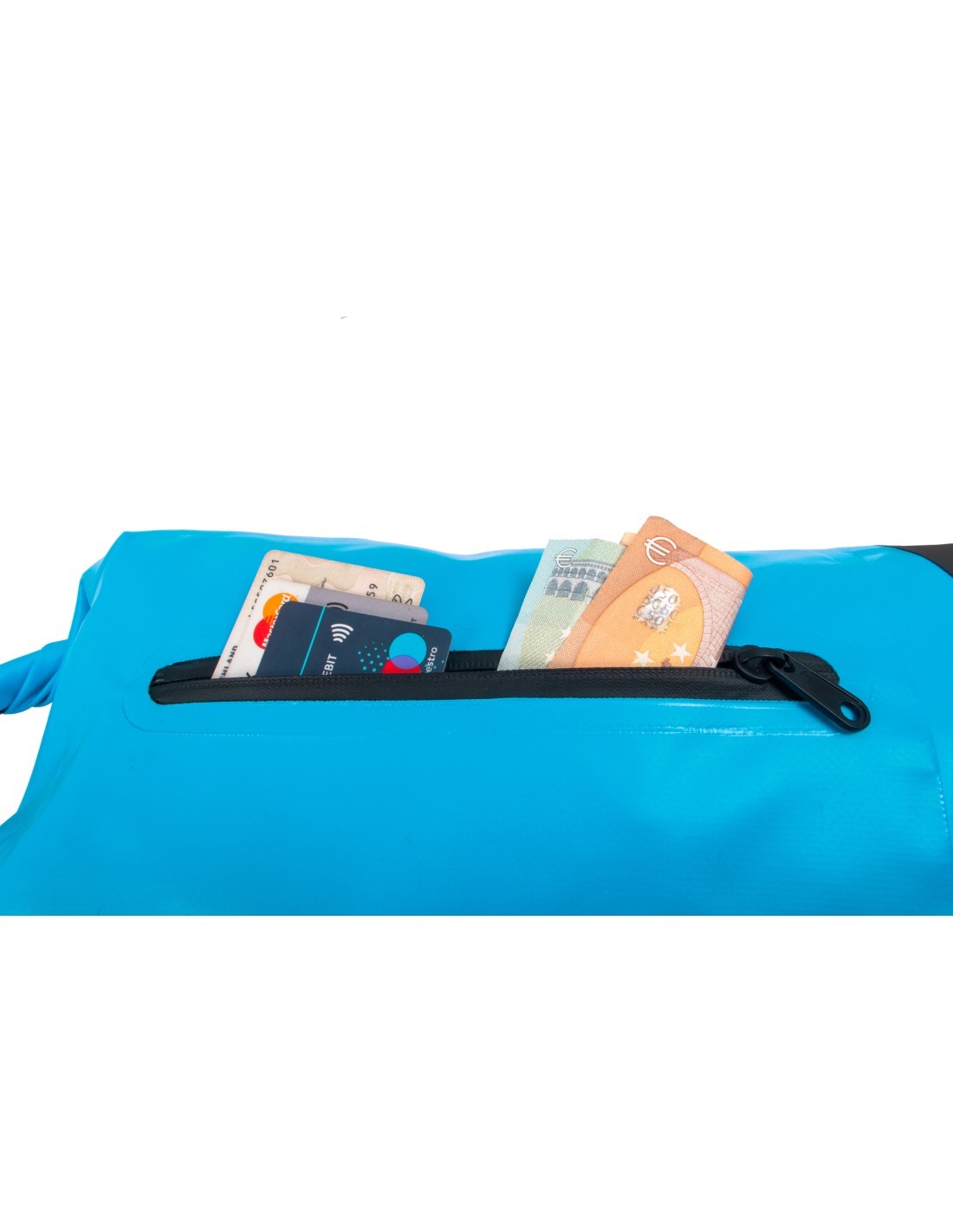 Чрезвычайно прочный и водонепроницаемый сухой мешок. Снаружи имеется водонепроницаемое отделение на молнии для хранения мелких вещей, таких как смартфон, ключи или бумажник. Сухой мешок имеет две регулируемые и съемные плечевые лямки, поэтому его можно носить как рюкзак. Легко закрывается поворотом открывающейся планки и соединением концов застежки. Сухой мешок может быть оснащен дополнительным замком на двух D-кольцах. Со светоотражающей полосой.